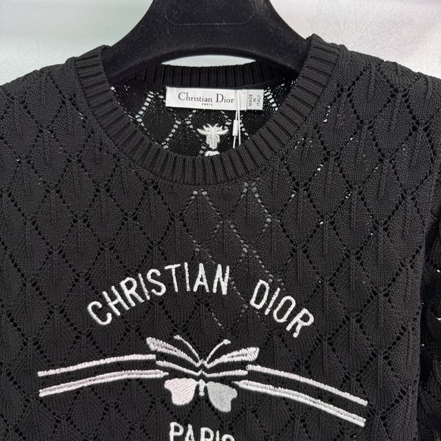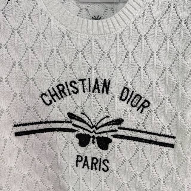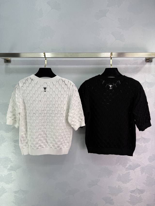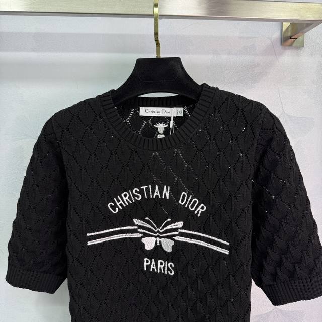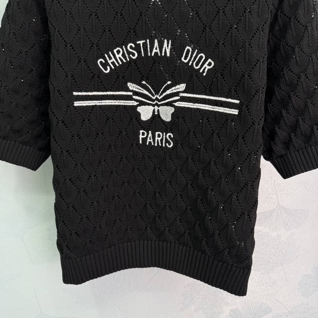 Dio*2025 New Arrival Hollow Diamond Knit Short Sleeve Custom Yb Wool Yarn Weaving Delicate Texture Soft and Comfortable Knit Short Sleeve Cutting Threaded Edge Adds Exquisite Tone Paired with Flexible Fabric Regular Fit Exudes Fashionable Elegance, Slimming and Inclusive Figure Hollow Diamond Crochet Texture Throughout The Body Embroidered Butterfly Pattern and Letter Logo Decorate the Chest to Show Brand Tone Versatile Style Suitable for All Ages and Skin Tones Paired with Skirts and Pants Suitable for Age-Reducing Fashionable Retro Style Custom Fabrics and Accessories Look for the High Version in 2 Colors and 3 Sizes Sml