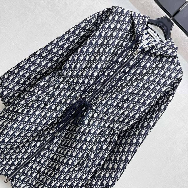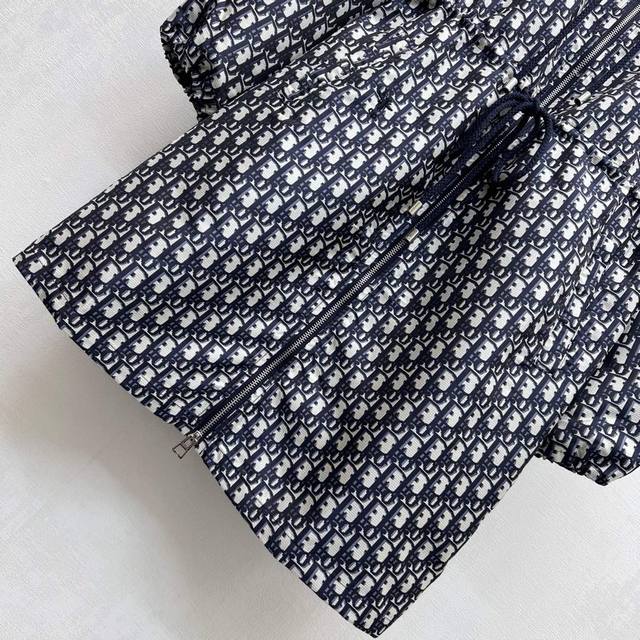 Dio*2025 New Arrival Jacquard Blazer Dress Custom YB imported jacquard blazer material for a comfortable and stylish look. The iconic logo is featured throughout. The jacquard pattern highlights the brand's tone. The two-way zipper design with a drawstring at the waist adds layered design and easily outlines curves and divides proportions. The hooded zippered windbreaker dress is tailored for commuting and dating. High-end version