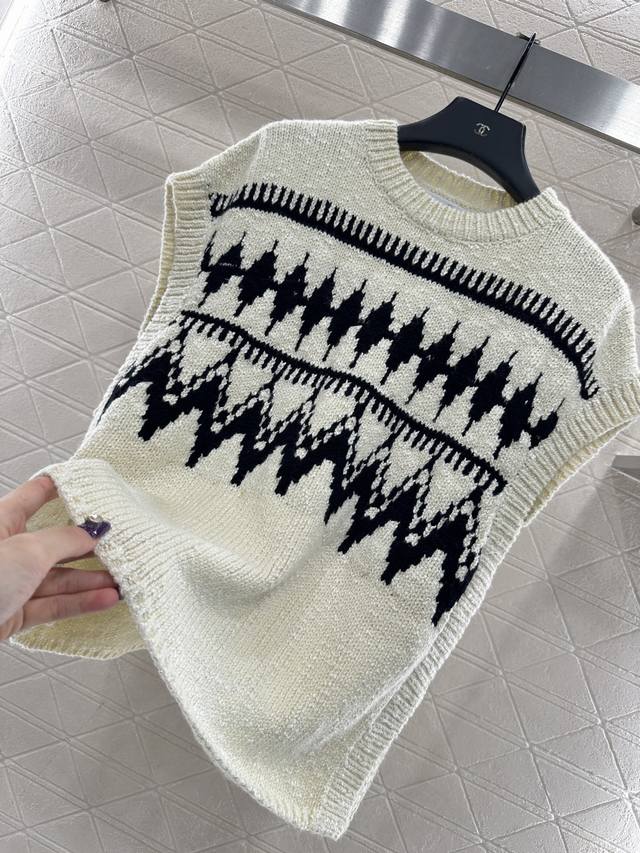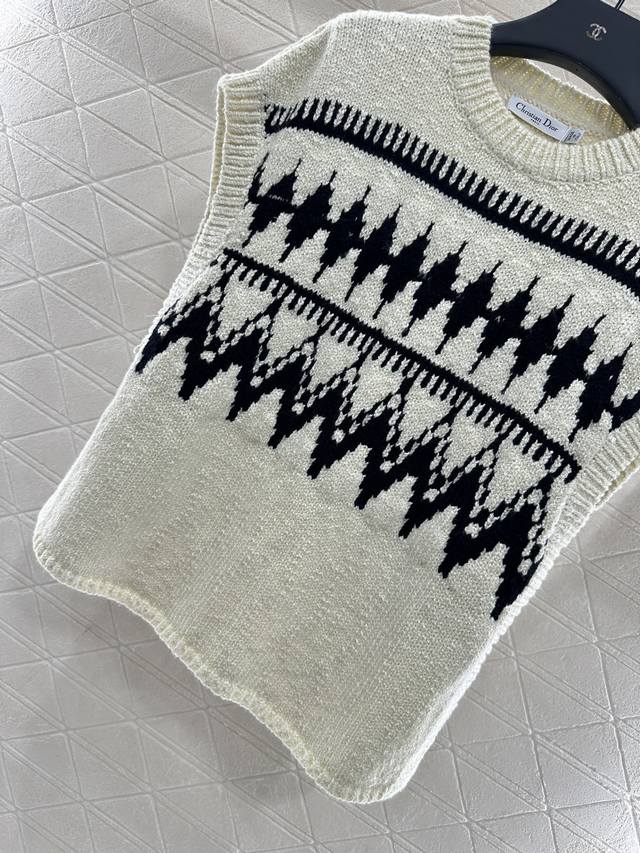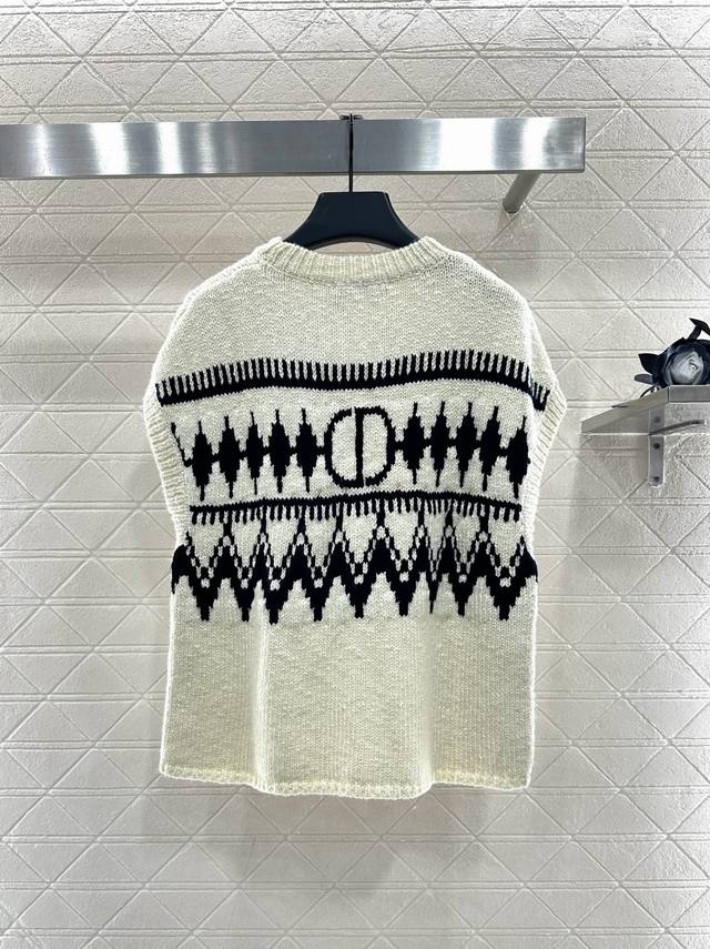 Dio*2025 New Arrival DDD Jacquard Knitted Vest DDD Made with custom Yb cashmere yarn, jacquard treatment creates different wave shapes. Wide-sleeved vest design with horizontal wave distribution on the chest, jacquard patterns such as serrated triangles, retro and fashionable, overall relaxed and stylish. Custom fabrics and accessories, high-quality version, 2 colors DDD