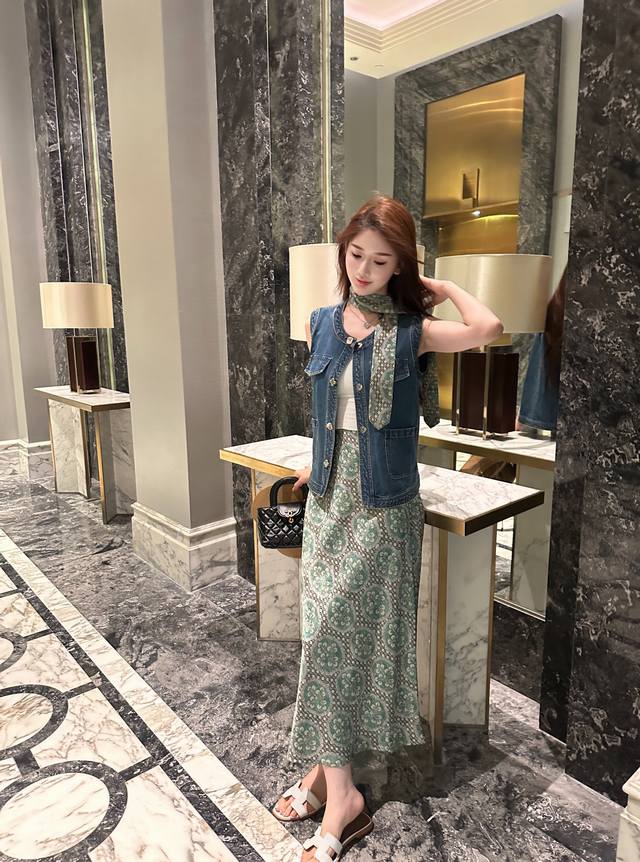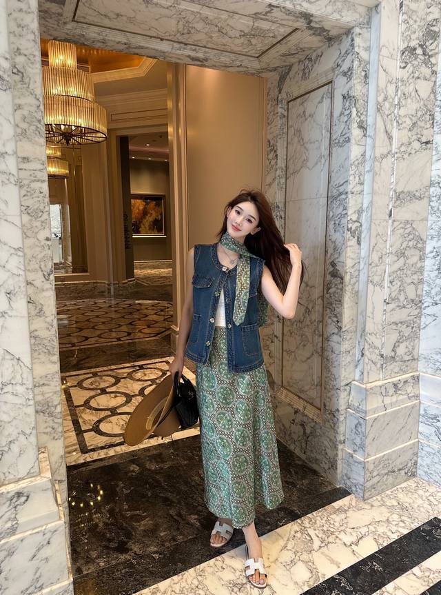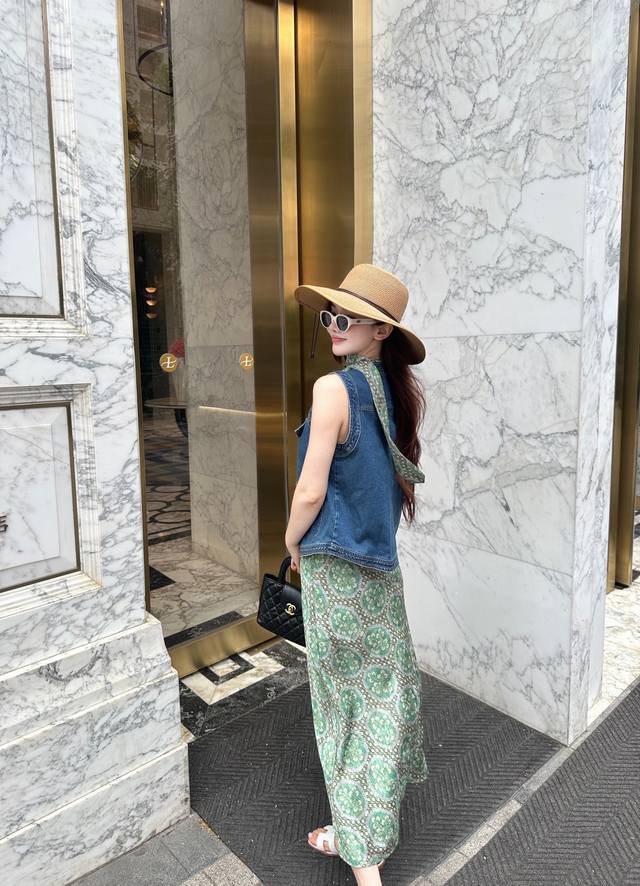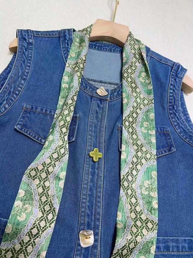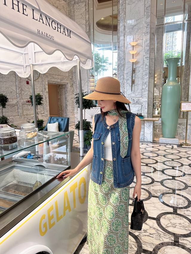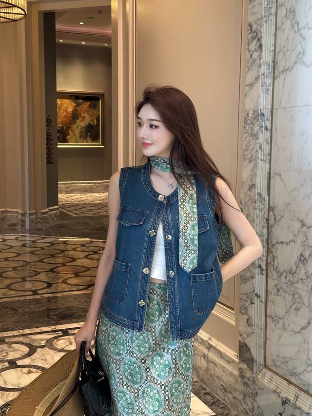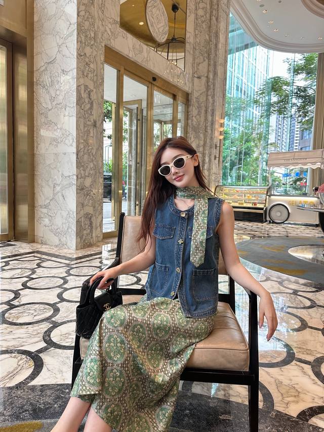 Customized Yb imported jacquard material with crisp texture and stylish upper body. Zipper vest dress pattern adopts jacquard craftsmanship all over the body. Fully printed with iconic letters and old flower patterns. Pure blue and white color matching. Retro and fashionable. Elegant temperament. One side of the waist is highlighted by bee Cd logo embroidery. Micro A version is inclusive of body modification curve style. Appropriate, slim and fashionable. Customizable for daily commuting. Surface and auxiliary materials. Look for the high version