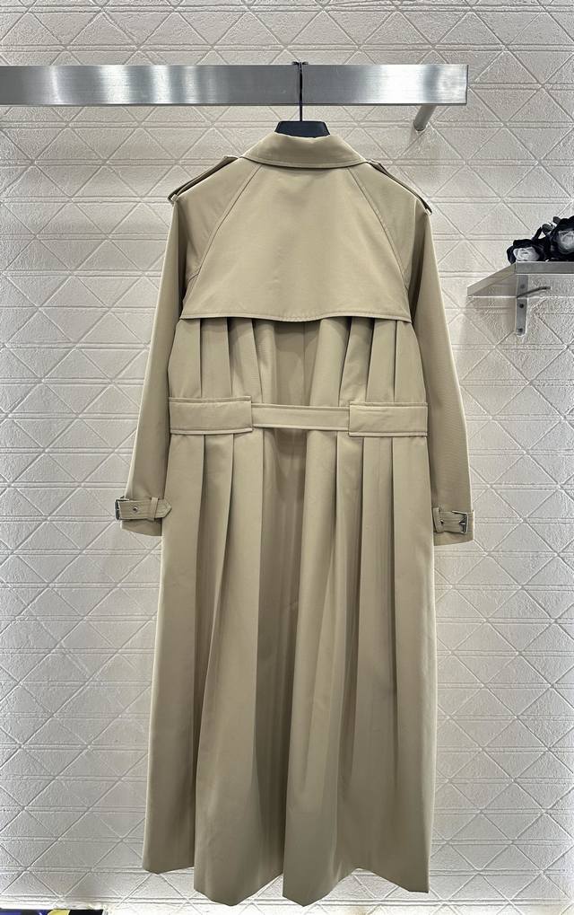 Dio*2025 New Arrival DDD Pleated Belt Long Trench Coat DDD Custom Yb imported trench coat material, crafted with superior workmanship, crisp and stylish. Long belted trench coat with a lapel, symmetrical folded cape design at the collar, double-breasted round buttons on the front, and slanted flap pockets enhance the coat's layered look. The waist features a perforated belt made of the same fabric, complemented by multiple pleats at the back waist to create a flattering silhouette. The shoulder and cuff buckles echo each other, and the letter embroidery and monogram lining complement each other perfectly. When open, it subtly showcases the brand's style, creating an elegant silhouette. Exudes British elegance and charm. Custom fabrics and accessories, please ensure you choose the high-quality version. DDD