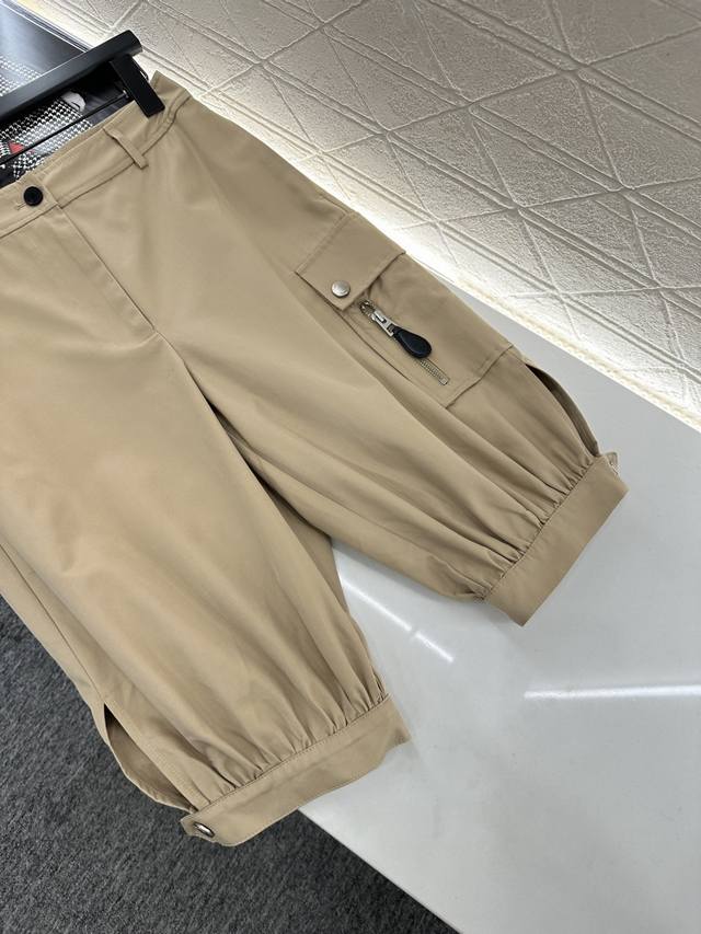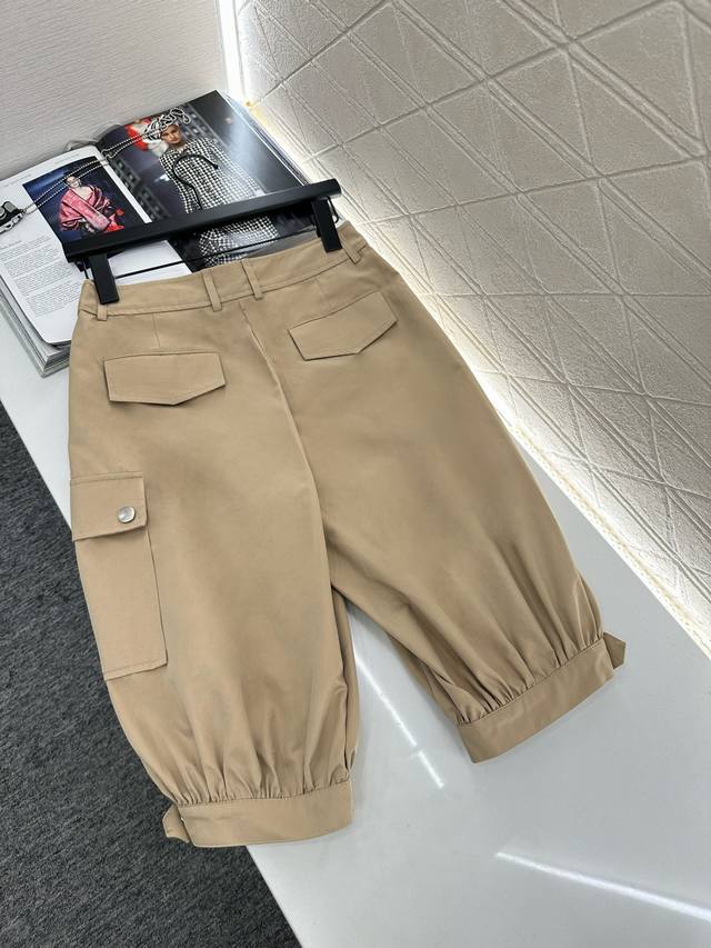 Custom Yb twill cotton material, delicate texture, comfortable to wear High waisted cuffed shorts, just the right length with pleats to reveal slender calf lines, adding layering and wearability to enhance the brand style. Relaxed and fashionable, wear a fashionable and popular style. Customized fabrics and accessories, look for the high version