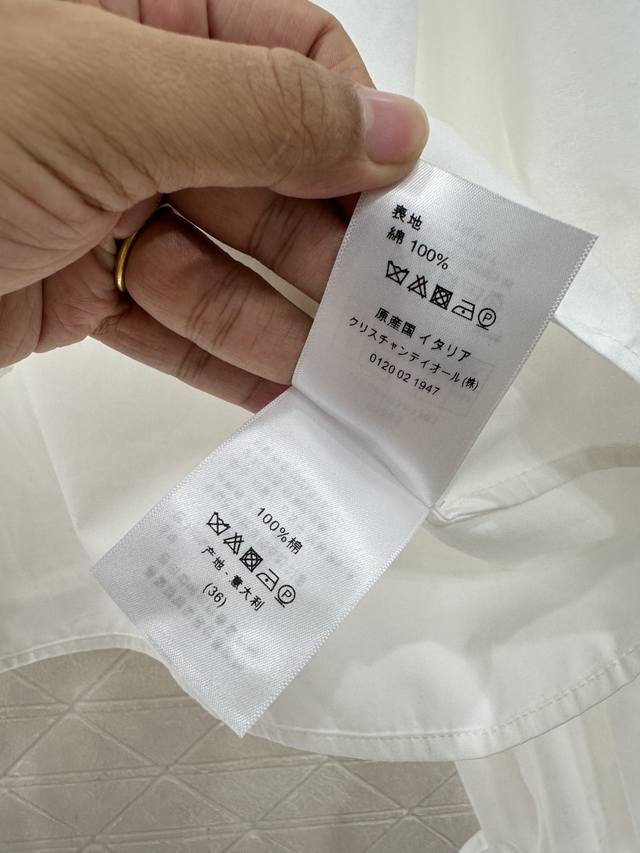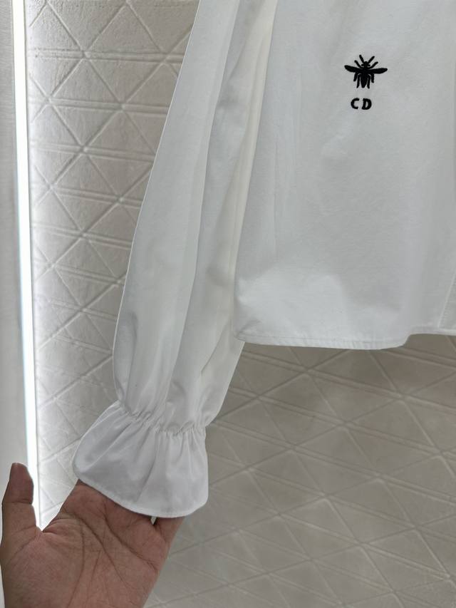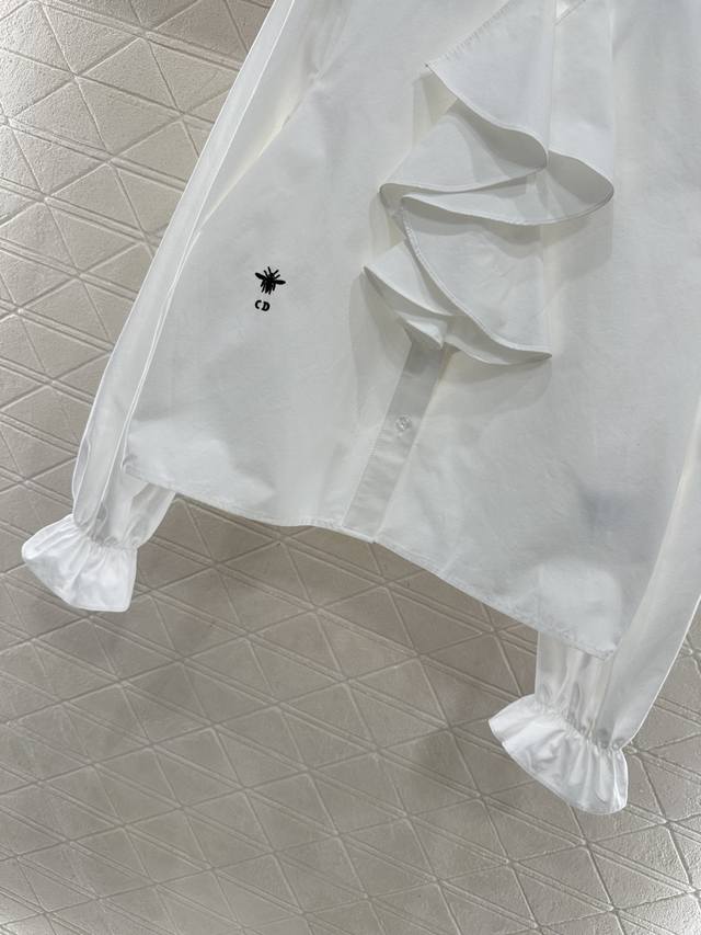 Dio*2025 New Arrival Ddd Stacked Cake Collar Shirt Ddd Custom Yb twill cotton, delicate texture , comfortable and breathable, lace shirt style, simple solid color, versatile and age-appropriate, stand-up collar with triangular flared stacked cake collar trim, echoing the cuffs, elegant and sophisticated, complemented by Cd bee embroidery to highlight its style, suitable for daily commuting. Custom fabric and accessories, look for the high-quality version, 2 colors: black and white DDD