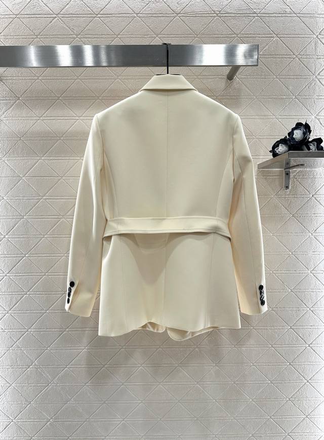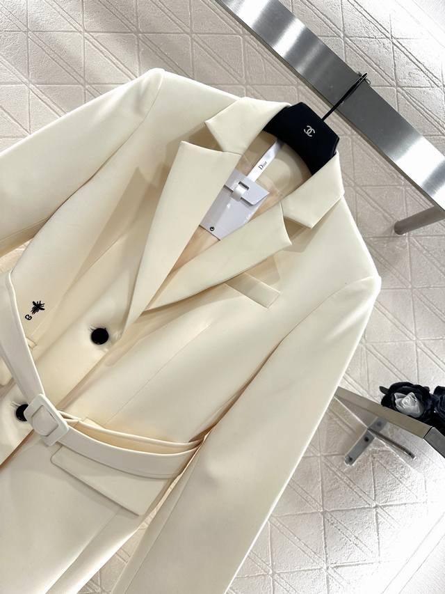 Belted Lapel Blazer. Custom-made Yb imported acetate material for a lustrous, drapey finish. Premium lapel, straight shoulders, and a suit silhouette. Single-breasted buttoned front. Adjustable, narrowing design. A belt-like design accentuates the waistline for a more refined look. Three-dimensional tailoring offers a versatile fit. The bee logo on the waist creates a stylish, relaxed look for a trendy, fashionable look. Custom-made fabrics and accessories. Look for the high-quality, two-color version.