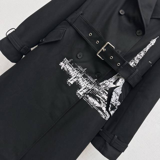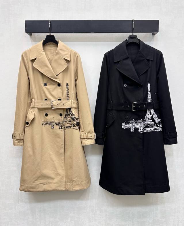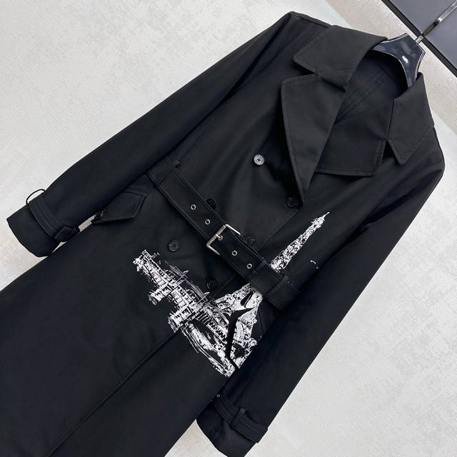 Dio*2025 New Arrivals: Custom Eiffel Tower Trench Coat Made of YB Imported Twill