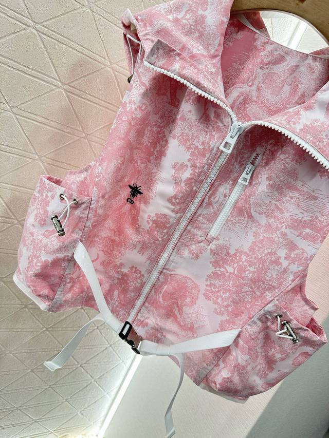 Customized Yb imported jacquard assault material is crisp and stylish with a full texture. The hooded vest is tailored with large-area animal and plant natural element patterns as the highlight, and the jacquard letter webbing on the back highlights the high-end positioning. The waist and side of the vest are symmetrically shaped. The pockets are matched with the drawstring buckle design. It is portable and practical to increase the sense of layering. The upper body is trendy and charming. It is a must-have fashion item for dating and leisure. Yb developed a matching white background with pink jacquard pattern. All details are customized and processed. The difference between the market version is worry-free to wear and customize the surface and accessories. Look for the high version of