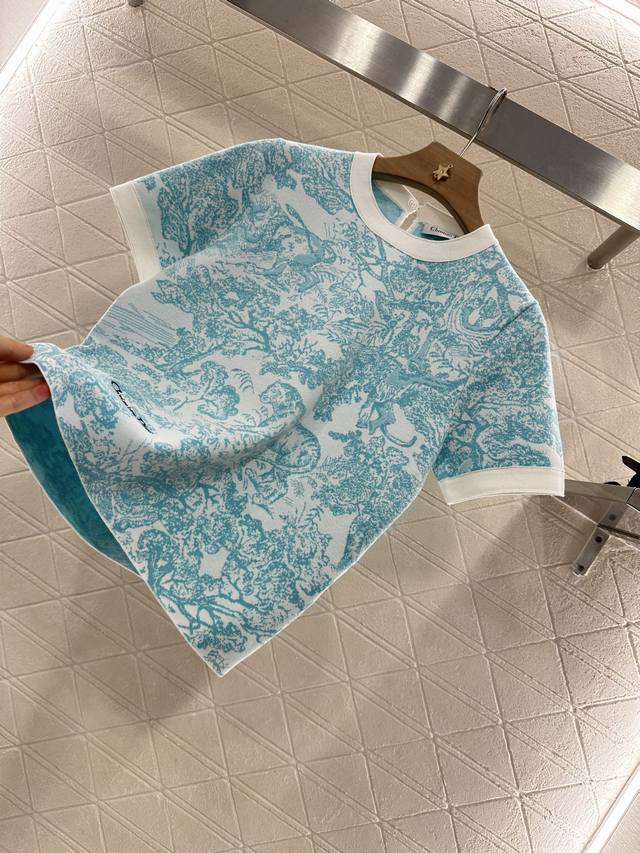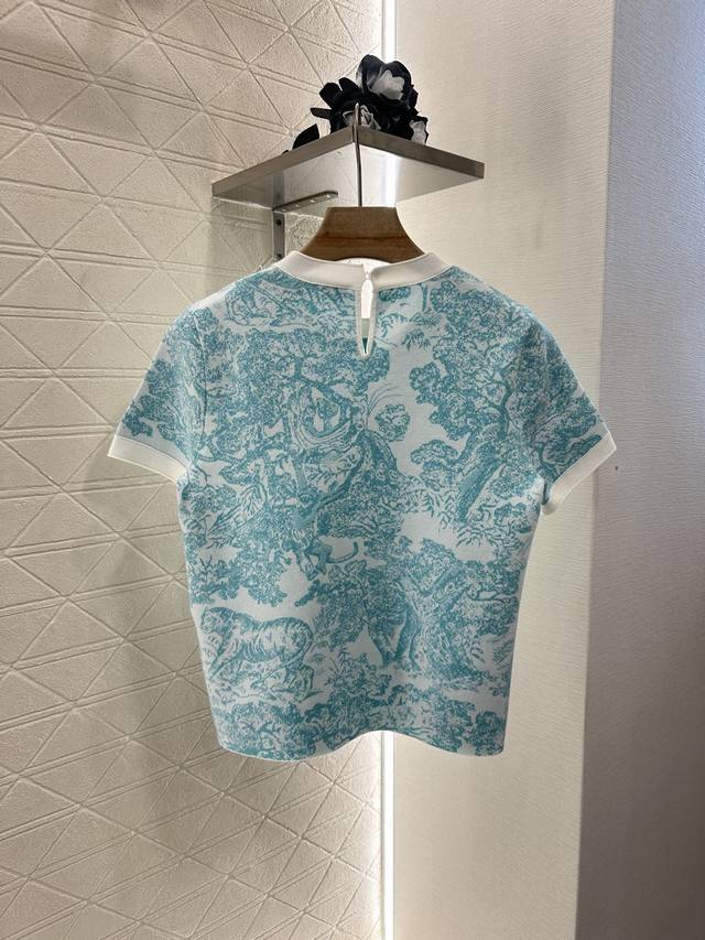 Customized Yb cotton nylon yarn with obvious texture and good appearance Round neck knitted short sleeves The whole body is covered with two-color natural jungle flora and fauna patterns The collision with the off-white hem of the cuffs and neckline makes the visual effect richer The back collar is hollowed out The hem is embroidered with letters and logos The layers are obvious and show the style A must-have for daily commuting and dating in the wardrobe Let the elegance and calmness continue forever Customized surface and auxiliary materials Look for the high version 3 colors.