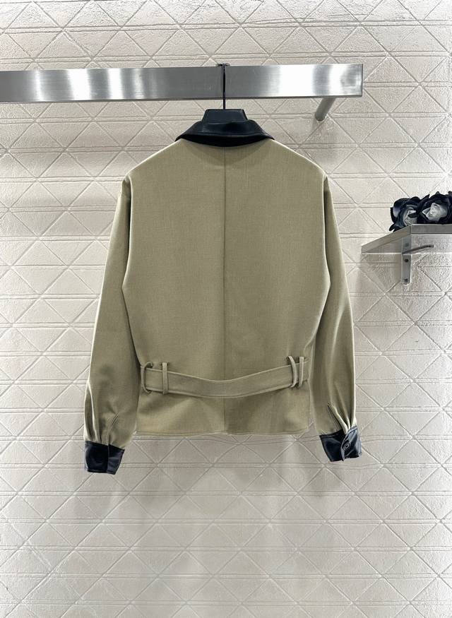 Custom Yb imported cotton and nylon material, high-quality texture, crisp and stylish, lapel jacket with a pair of pants, leather lapel and cuffs echoing, front button placket and adjustable fabric belt, simple and fashionable tailoring, chest flap pockets embellished with letter embroidered logo, the overall low-key and sophisticated. Paired with the same series of high-waisted straight-leg trousers, the details of the upper and lower parts echo the brand style, revealing a slim waist and long legs, and the matching design echoes, showing a workwear-style casual old-fashioned style, fashionable and stylish. Customized fabrics and accessories, look for the high version 2 colors. Set