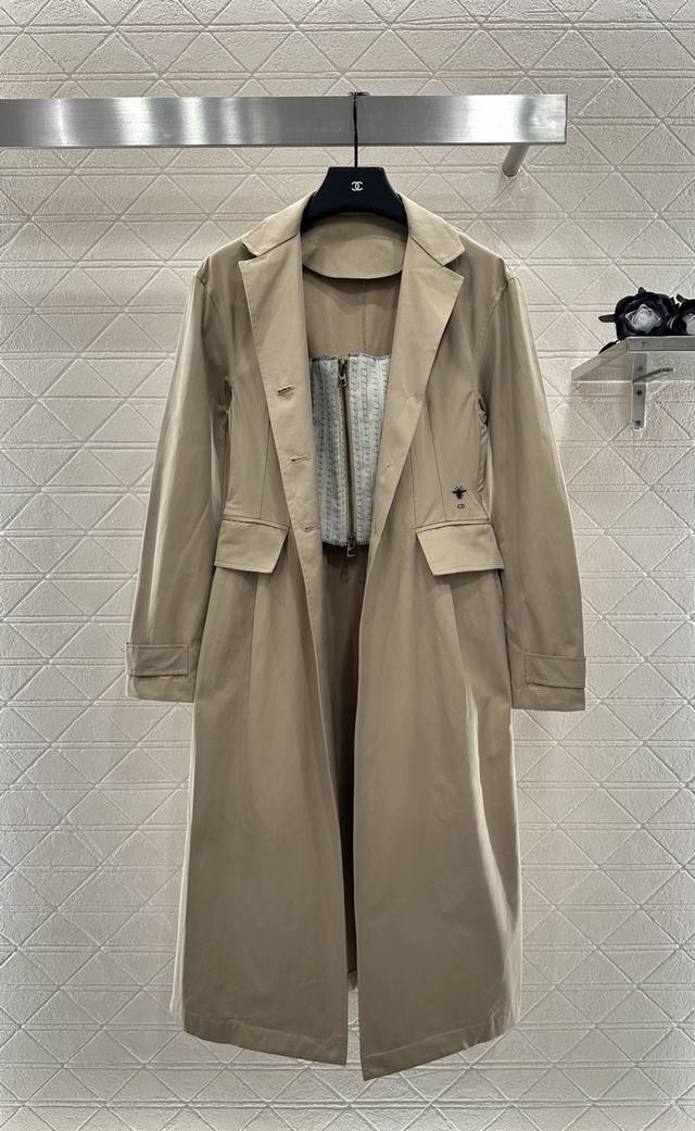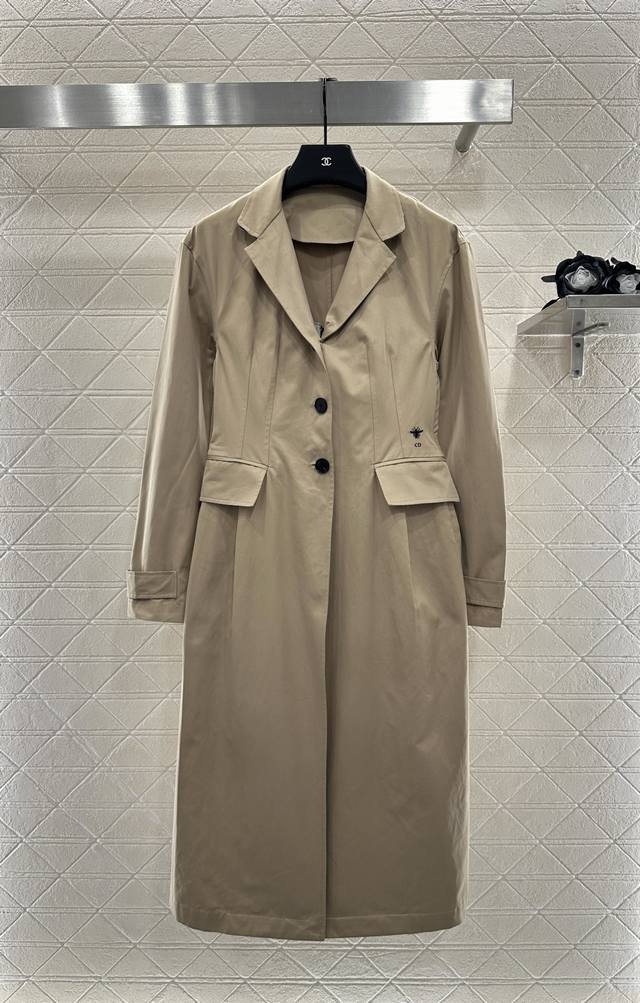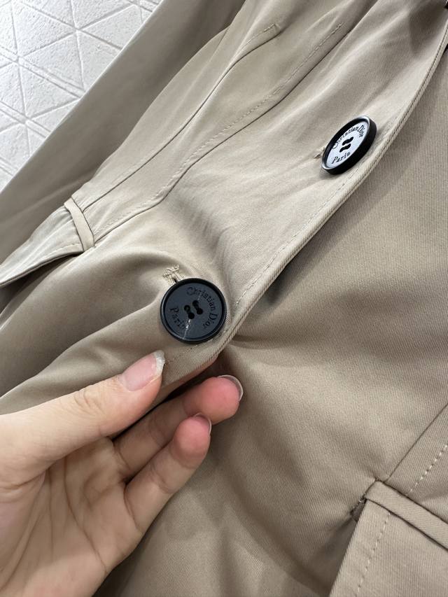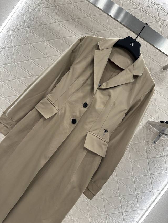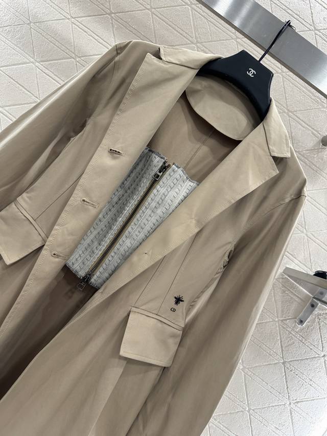 Custom Yb Imported Cotton Trench Coat Material is processed to create a crisp and stylish texture. High-end long trench coat with peaked lapels that can be worn as a stand-up collar. Three-dimensional tailoring contours the waist. The inner zipper outlines the corset-like narrowing hem. The cocoon-shaped straight tube creates elegant curves like a dress to create an upright posture. The bee CD logo embroidery inadvertently highlights the luxury. Symmetrical flap pockets on both sides brighten the shape. The long style is suitable for the transition between autumn and winter. It is a must-have item that combines fashion and practicality. Wear it as a trench coat for daily wear. It has a charming and British elegance. Customized fabrics and accessories are recommended. Look for the high-end version