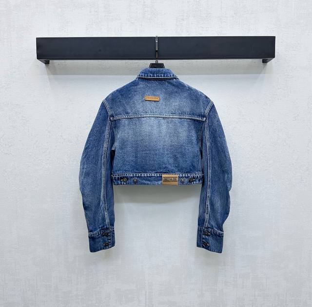 Dio*2025 New Arrivals: Short, oversized denim jacket, custom-made with imported YB twill cotton denim for a crisp, stylish, and textured look. Washed and distressed in a vintage denim color, the jacket features a special craftsmanship for a rubbed, premium look. Elbow splits create a scimitar-like effect, effectively modifying the hand lines and adding layered styling. The silhouette is simple yet stylish. The lining is covered with the iconic jacquard pattern, echoing the brand's signature lettering. The leather label on the back collar and side hem highlights the brand's signature design. The jacket features a lapel and can be paired with matching trousers for a more versatile look. The jacket's tailoring creates a casual, free-spirited, and stylish look. Available in two high-end colors.