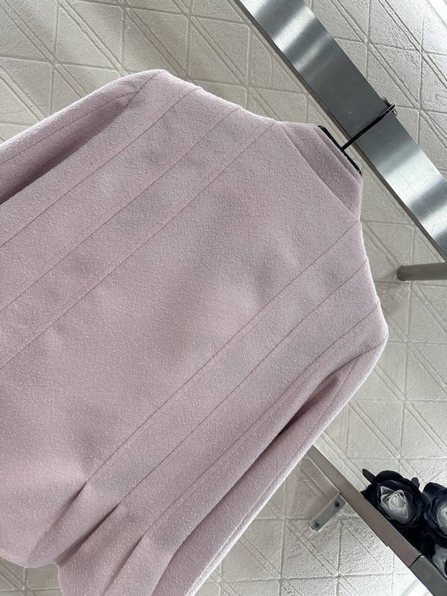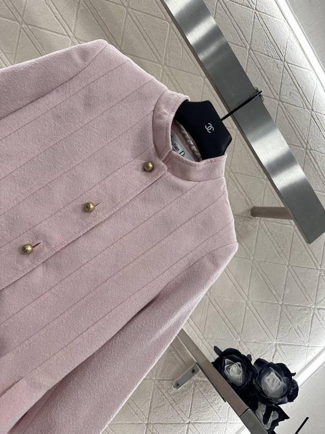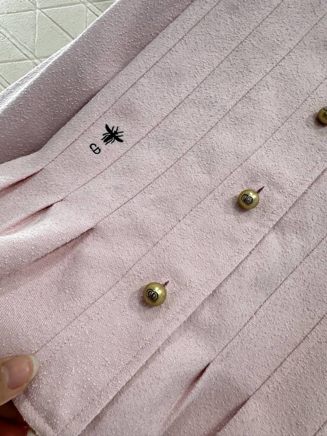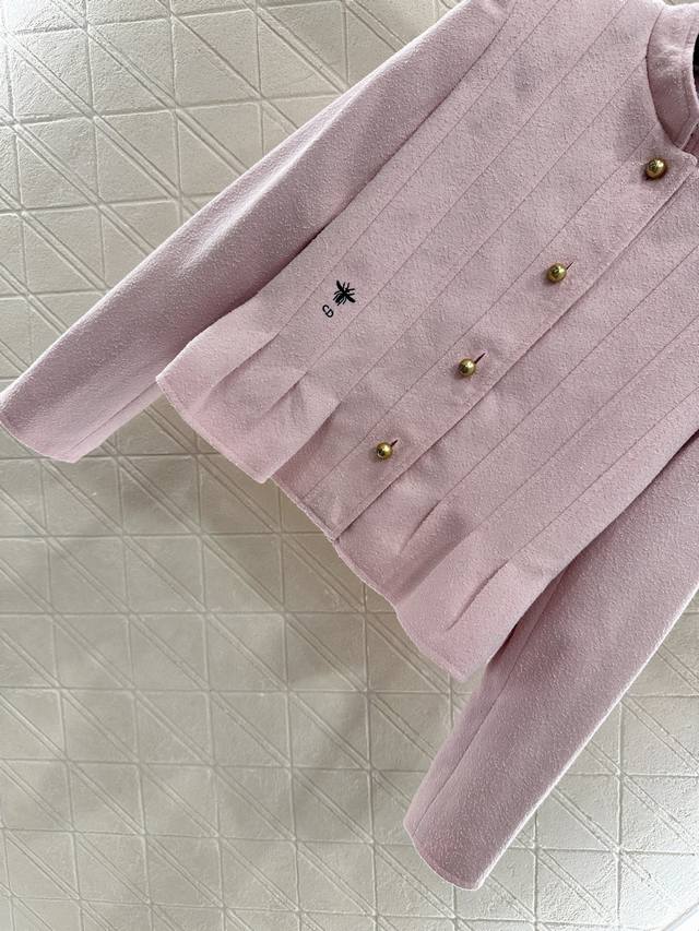 Custom Yb imported cotton and wool material with a noticeable texture and smooth drape. Padded shoulder jacket cut for a large body with vertical contour lines and texture. Regular, slightly shorter fit to enhance the figure. Exquisite flower bud detailing at the hem. Simple and elegant style. Embroidered bee CD logo at the waist highlights the brand style. Low-key luxury exudes elegant temperament. Customized fabrics and accessories. Look for the high version and 2 colors