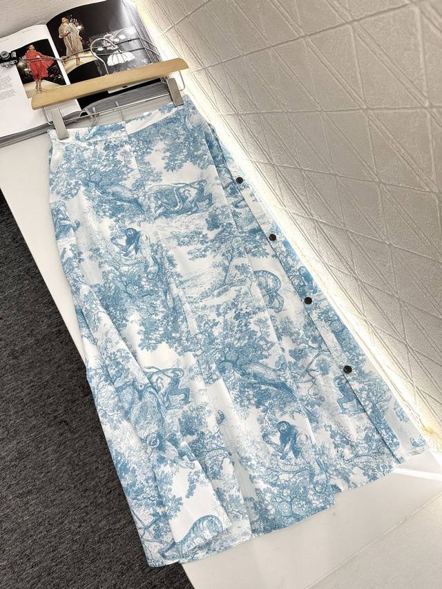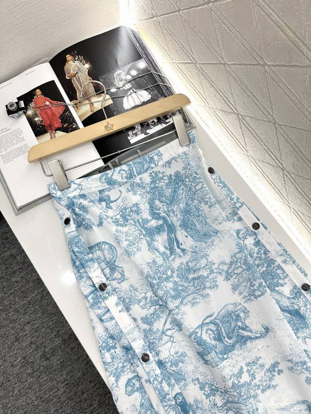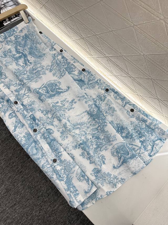 customized Yb imported silk cotton material texture is smooth and comfortable. The straight shoulder lapel shirt is printed with jungle flora and fauna patterns all over the body, bringing a strong holiday atmosphere. The atmospheric and fashionable top modifies the figure and temperament is elegant and exquisite. The pointed collar is matched with the front placket. The single-breasted decoration is short in front and long in the back. The neat tailoring details show the texture of the big brand. The side waist is decorated with bees. The Cd letter logo is matched with the same series of skirts. The cotton fabric prints the style. The outfit is fashionable and stylish. The holiday atmosphere is full. It is also great to match separately. Customized surface and accessories are recognized for the high version of the 2-color shirt skirt