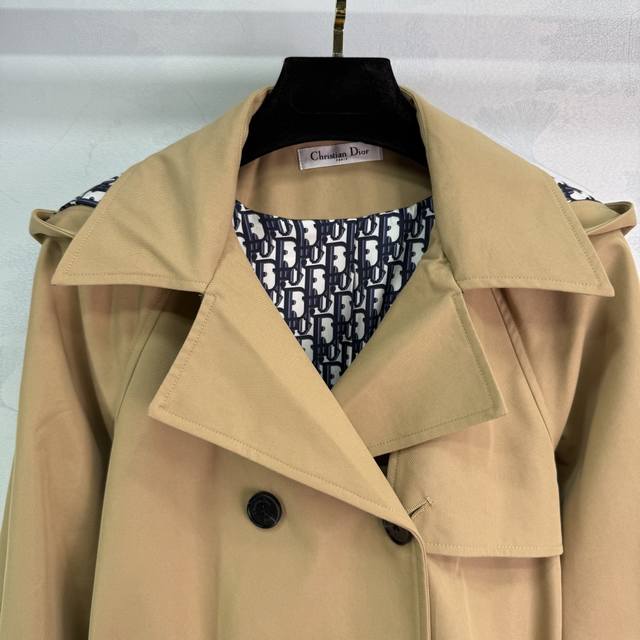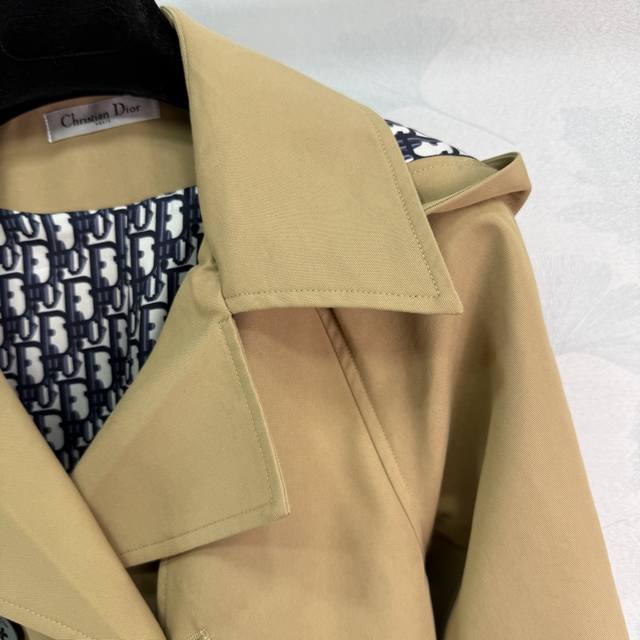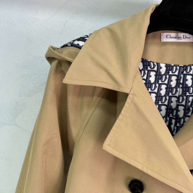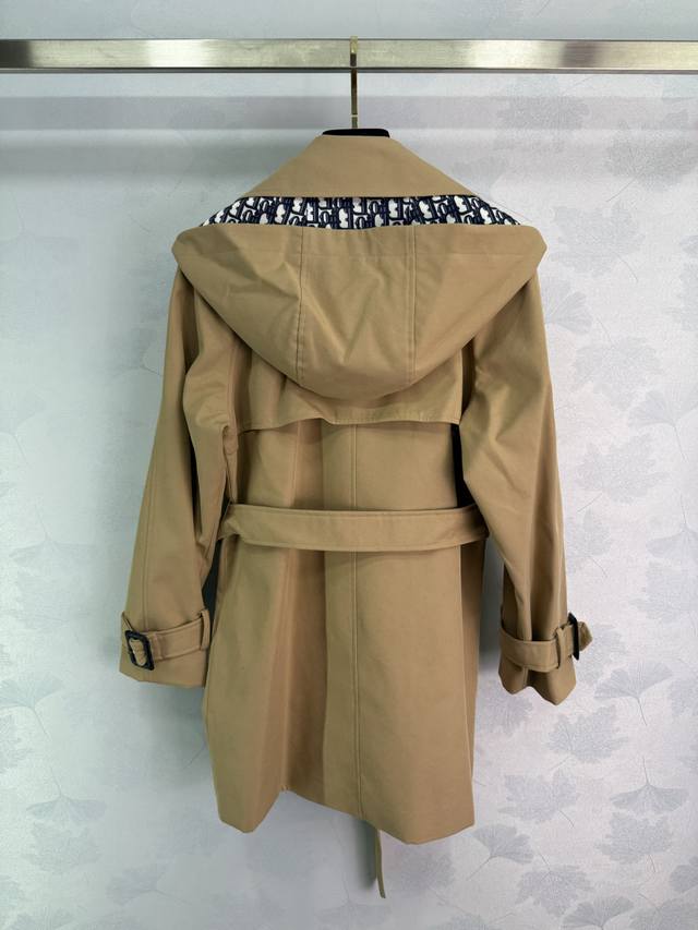 Dio*2025 new style lapel belted trench coat, custom-made with imported YB materials. The coat is crisp, comfortable, and stylish. The lining of the hood features a signature logo, highlighting the brand's signature. Adjustable buttons on the placket and matching fabrics. Adjustable belt details add a sense of detail. The peaked lapel design adds a sense of layering to the overall look. The upper body is made of retro, premium fabrics and accessories. The lapel collar and hooded trench coat are tailored for a stylish and elegant early fall look, showcasing the allure of British elegance! Two colors and three sizes. Sml T226B.