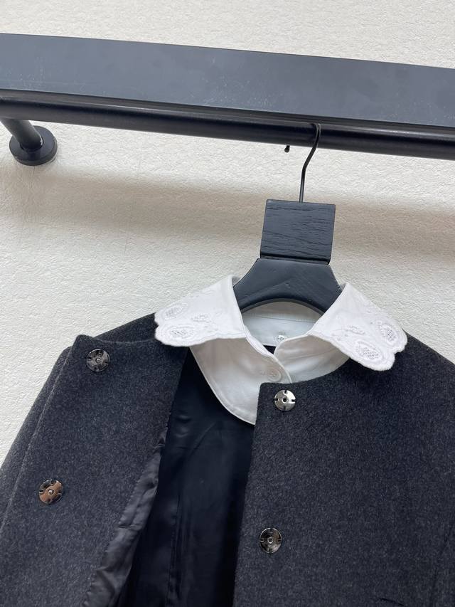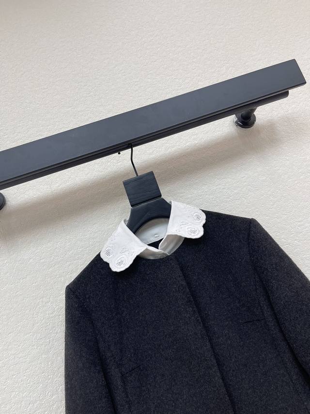 Dio*25 Autumn/Winter New Arrival: Embroidered Collar Peter Pan Design Wool Mid-Length Coat Dress. Very youthful and can be worn as an outerwear piece or as a short dress. The dress length is flattering and elongates the legs. The collar is detachable and customizable. The wool fabric is comfortable and warm, offering both elegance and style. It looks very sophisticated on. Sml Aa. DDD