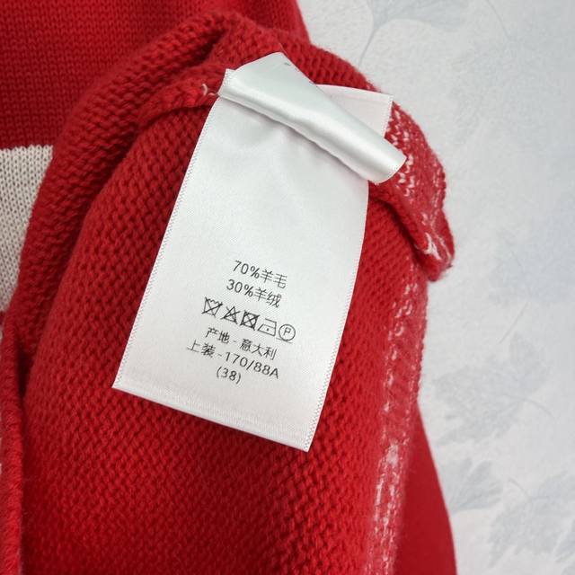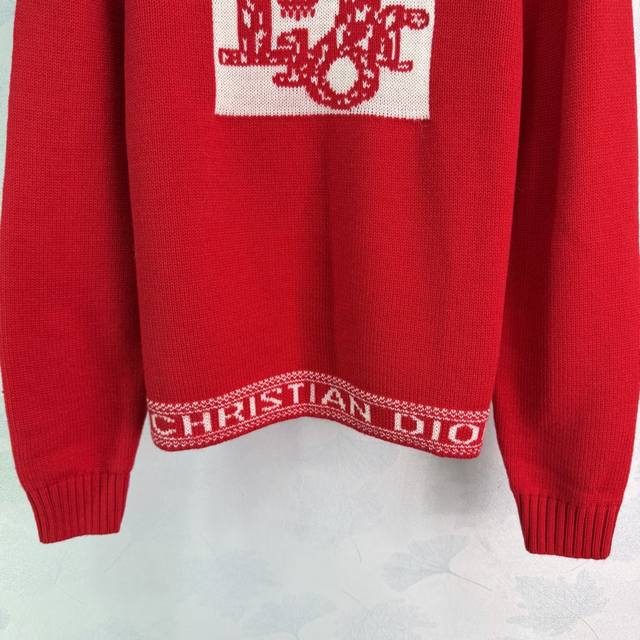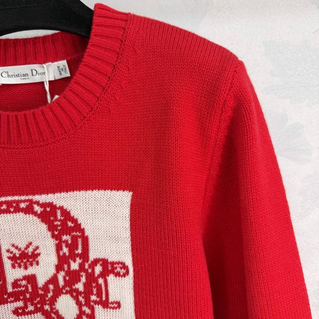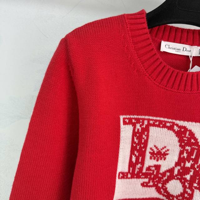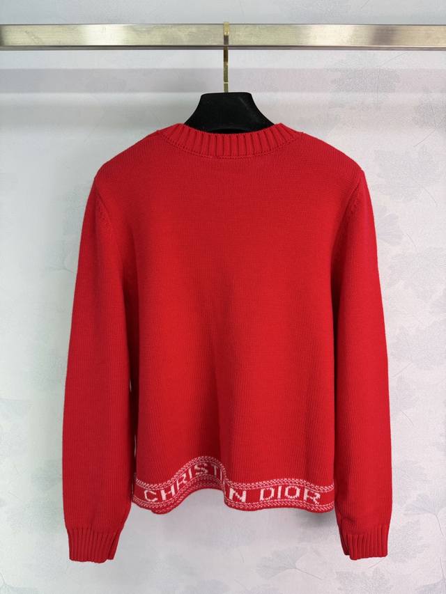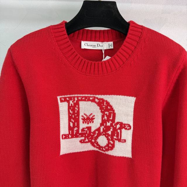 Dio*25 Autumn/Winter New Crew Neck Knit Sweater, made of high-quality wool blend, soft and warm. Features a logo embroidery and Nordic knit pattern on the chest, showcasing exquisite details. Ribbed cuffs and hem. The vibrant red color exudes elegance and pairs perfectly with jeans or a skirt for a stylish, effortlessly chic look. Available in 3 sizes: S, M, L, T226B. DDD