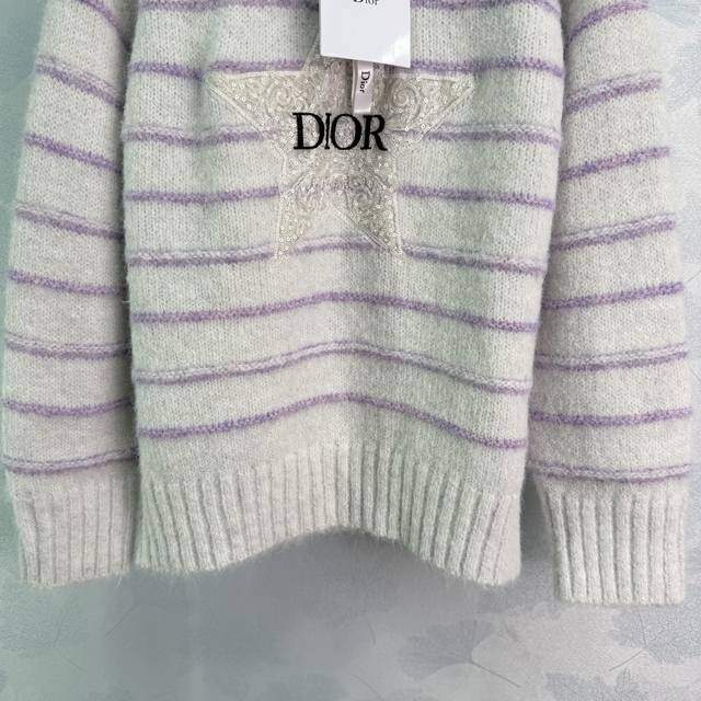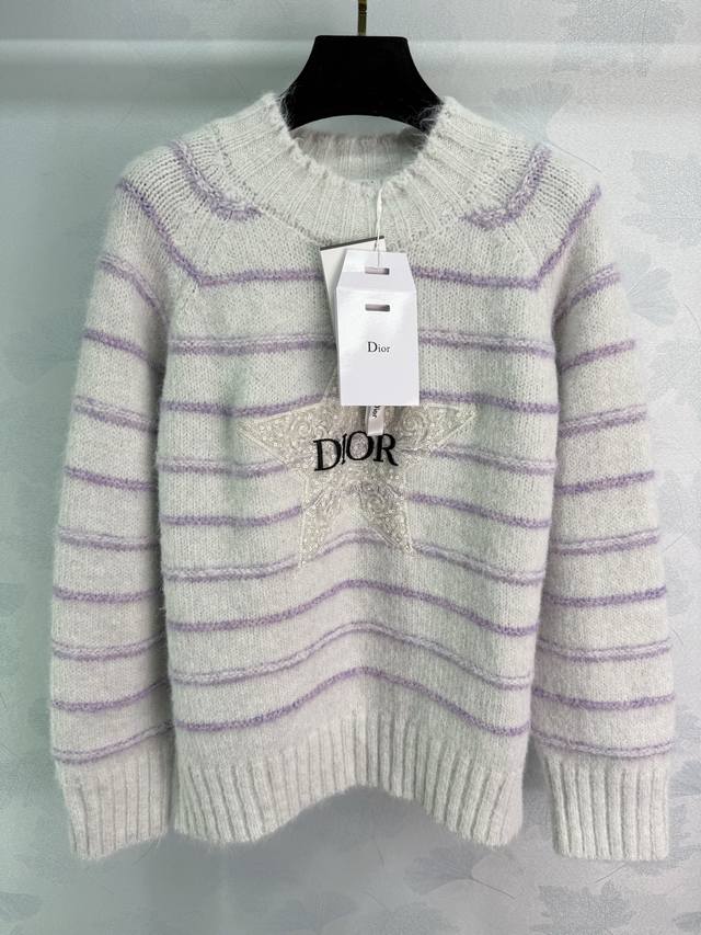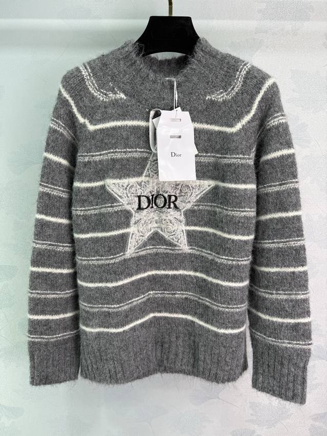 Dio*25 Autumn/Winter New Round Neck Long Sleeve Knit Sweater with Letter and Star Embroidered Stripes on the Chest - A Versatile Autumn/Winter Style! 2 Colors, 3 Sizes (S, M, L), T226B.