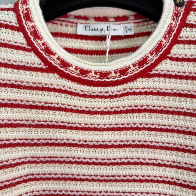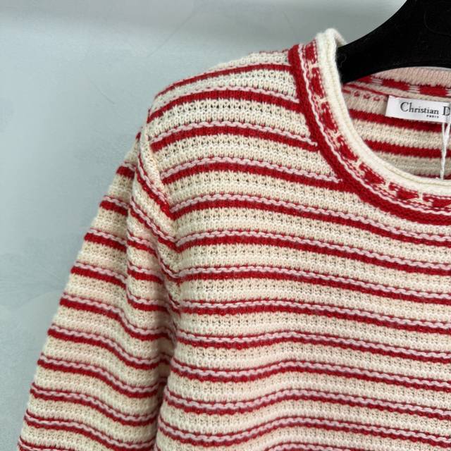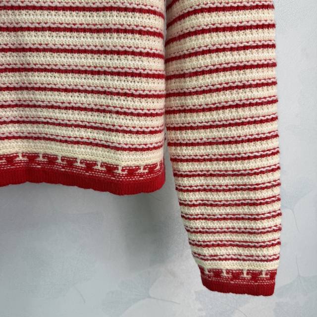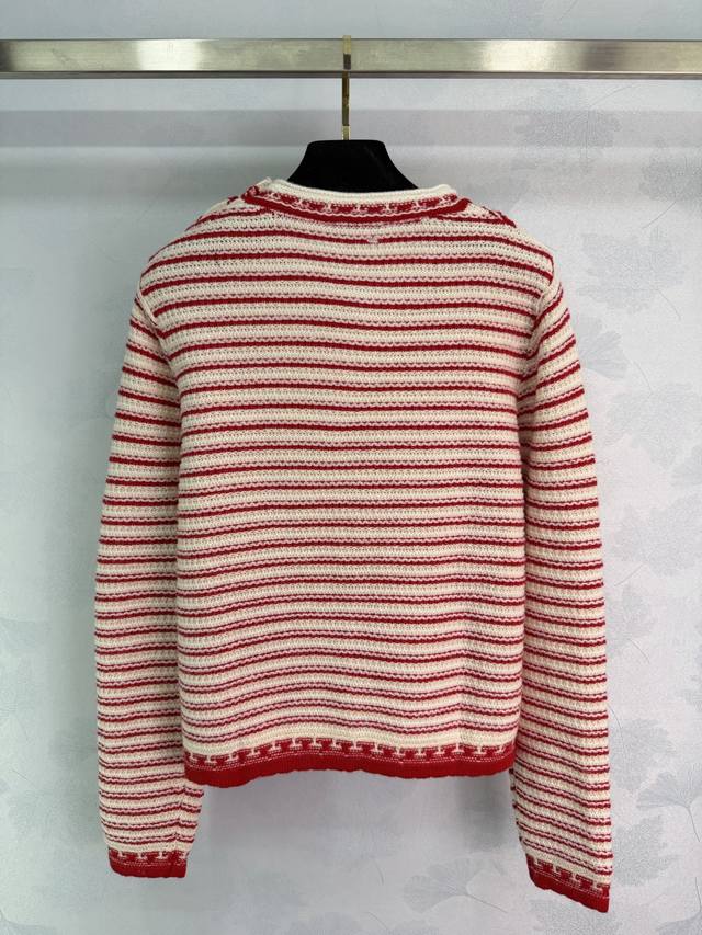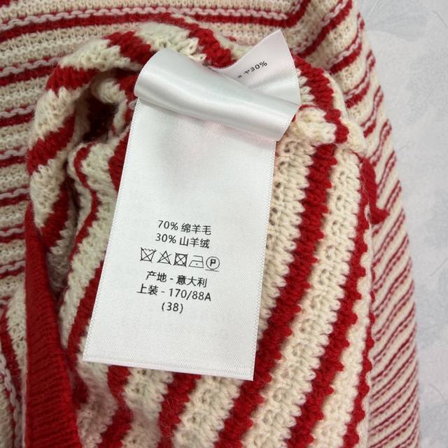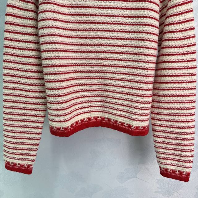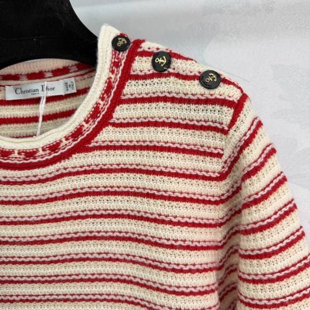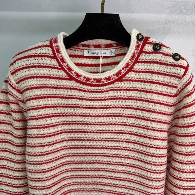 Dio*25 Autumn/Winter New Striped Knit Sweater: The red and white color-blocking design is eye-catching, and the wool material is soft and warm. The five-pointed star button details are very distinctive. The elastic ribbed knit technology makes it comfortable to wear and flattering for all body types. It easily pairs with various bottoms, suitable for both casual and vacation styles. 1 color, 3 sizes: S, M, L, T226B, DDD