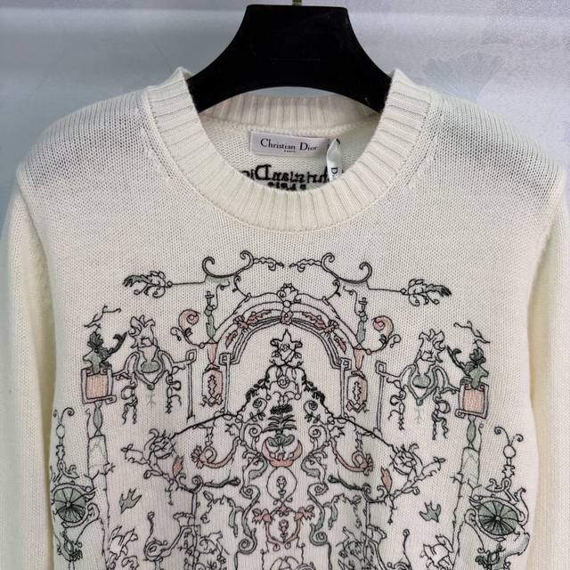 Dio*25 Autumn/Winter New Sweater, creamy white base with Baroque castle garden embroidery, exquisite details, full of courtly feel, soft, skin-friendly and warm wool fabric, super comfortable to wear in autumn and winter. 2 colors, 3 sizes: S, M, L, T226B. DDD