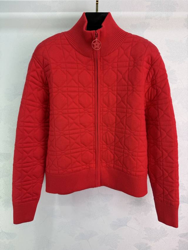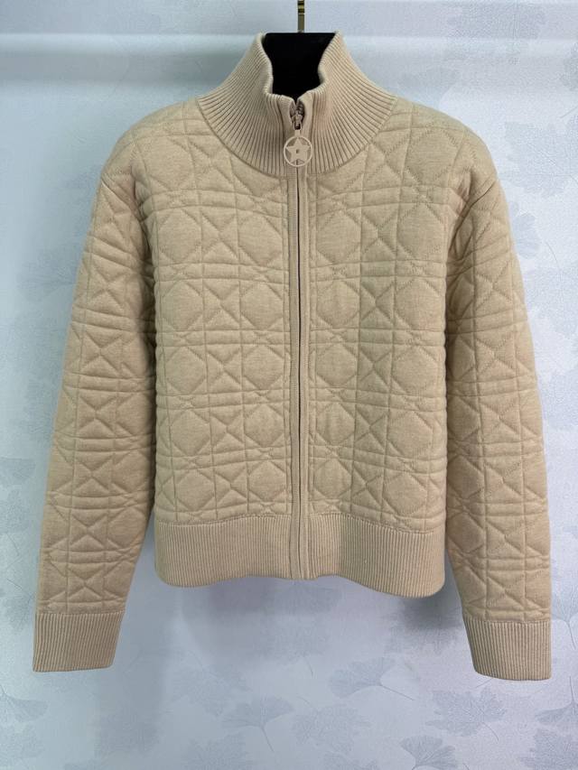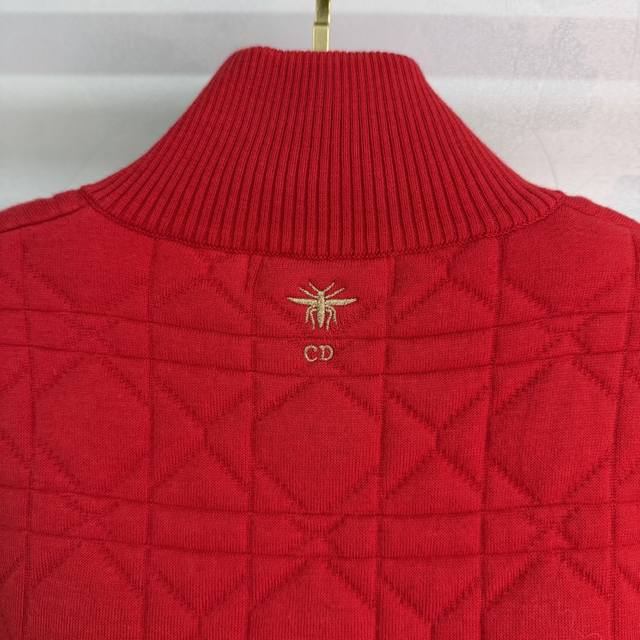 Dio*25 Early Autumn New Knitted Cardigan with Exquisite Embroidered Bee on the Back, Diamond Pattern Design on the Chest, High Neck with Zipper, Ribbed Cuffs, Soft and Comfortable Fabric, Overall Stylish and Casual, Highlighting a Light Luxury and Fashionable Temperament, Suitable for Retro and Stylish Goddess Outfits, 2 Colors, 3 Sizes Sml T226B DDD