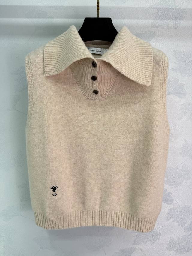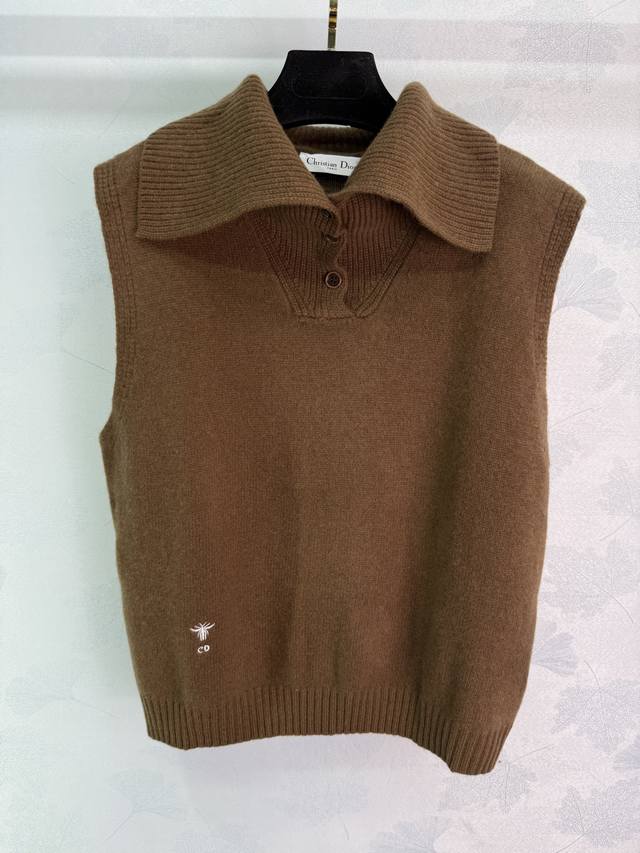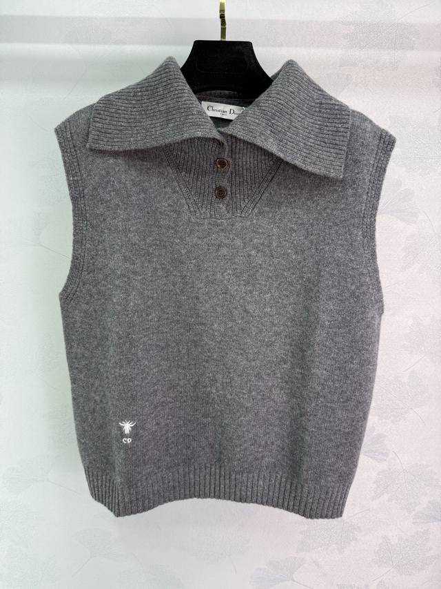Dio*25 New early autumn knitted vest with lapel design and three buttons. Logo embroidery on the waist side. Light luxury and fashionable temperament. Can be worn alone or layered. The first choice for fashionable wear in all seasons! 3 colors and 3 sizes Sml