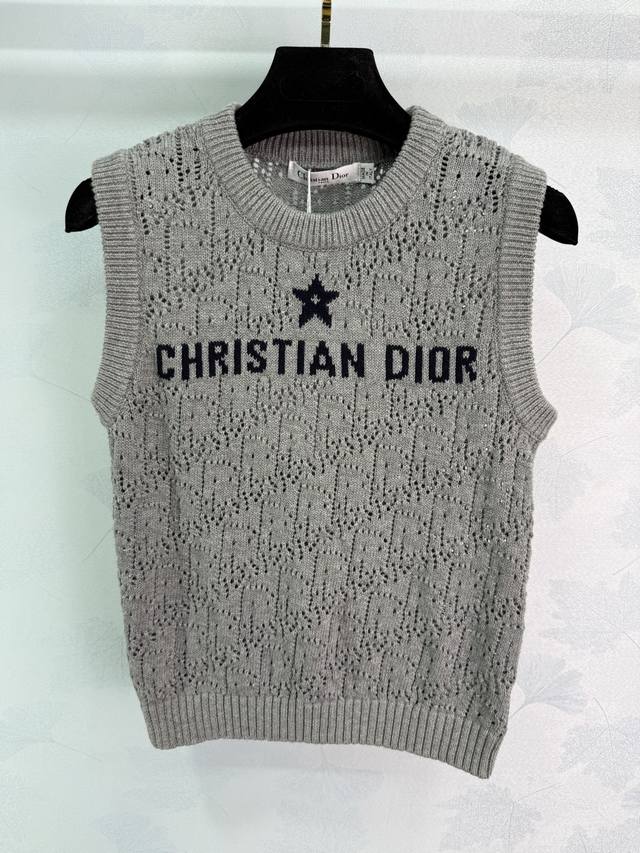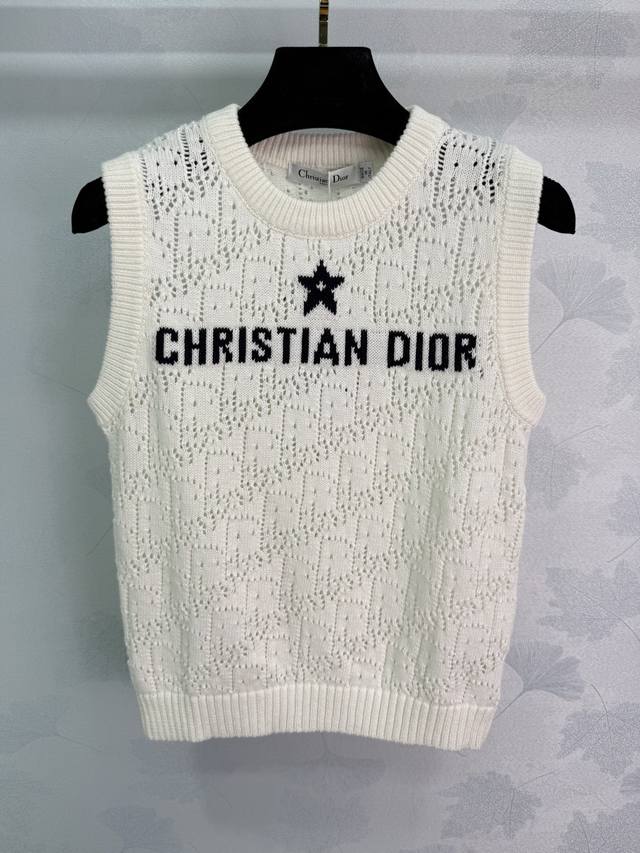 Dio*25 New Early Fall Five-Pointed Star Knit Vest with Exquisite Hollow Jacquard Craft and Letter Embroidery on the Chest. Round Neck Vest Design. Soft and Comfortable Fabric. Regular Fit. Versatile and Perfect for Everyone! 3 Colors, 3 Sizes. Sml T226B