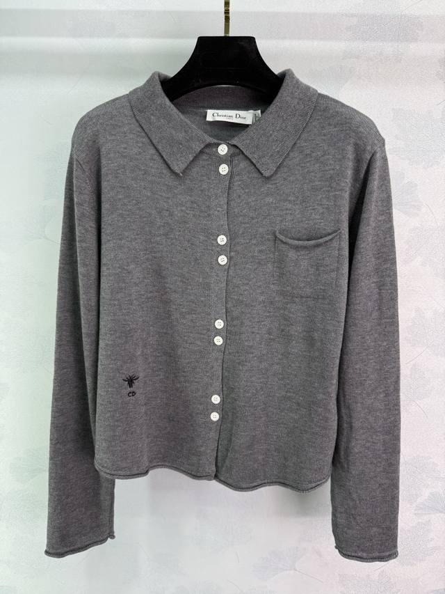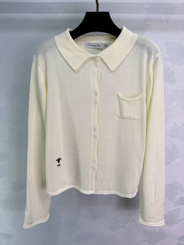 Dio*25 New Early Fall Knitted Polo Neck Top with Bee Embroidery on the Right Side. Simple and Elegant. Double-Breasted Cardigan Style: Slim Fit, Versatile, Easy to Wear, Whether for Daily Travel or Leisure Entertainment, It's an Age-Reducing Essential! 2 Colors, 3 Sizes Sml