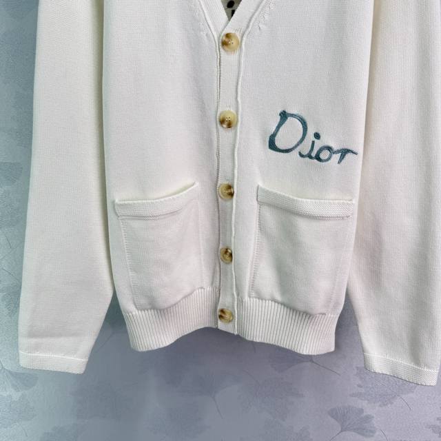 Dio*25 New Early Fall Knitted V-Neck Cardigan. Made of pure cotton blend, this cardigan is soft and comfortable. Features exquisite embroidery on the front and back. Double pockets, logo on buttons, and ribbed trim. This simple, versatile cardigan is perfect for everyday wear during the fall and winter seasons! Available in one color, three sizes. Sml T226B.