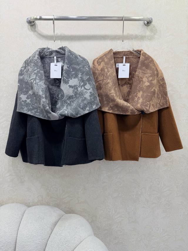 Dio*25 New High-End Cashmere Coat - Versatile, Brand Custom Fabric, Double-Sided, Two-Tone with Logo Pattern - Exudes Sophistication and Feels Absolutely Luxurious When Worn - 100% High-Count Wool, Thick Fabric, Very Stiff Cut, Short Style, 2 Colors, 3 Sizes (Smlb. DDD)