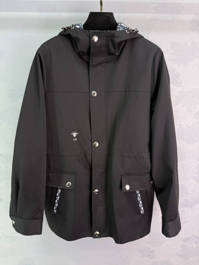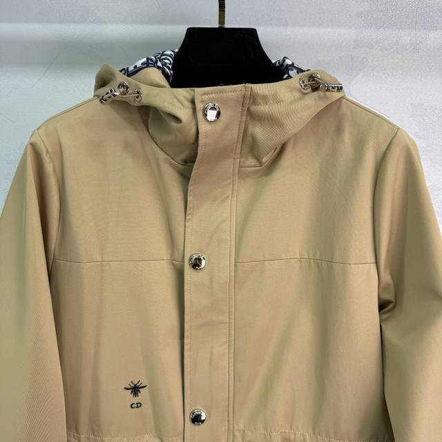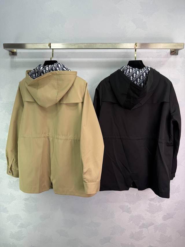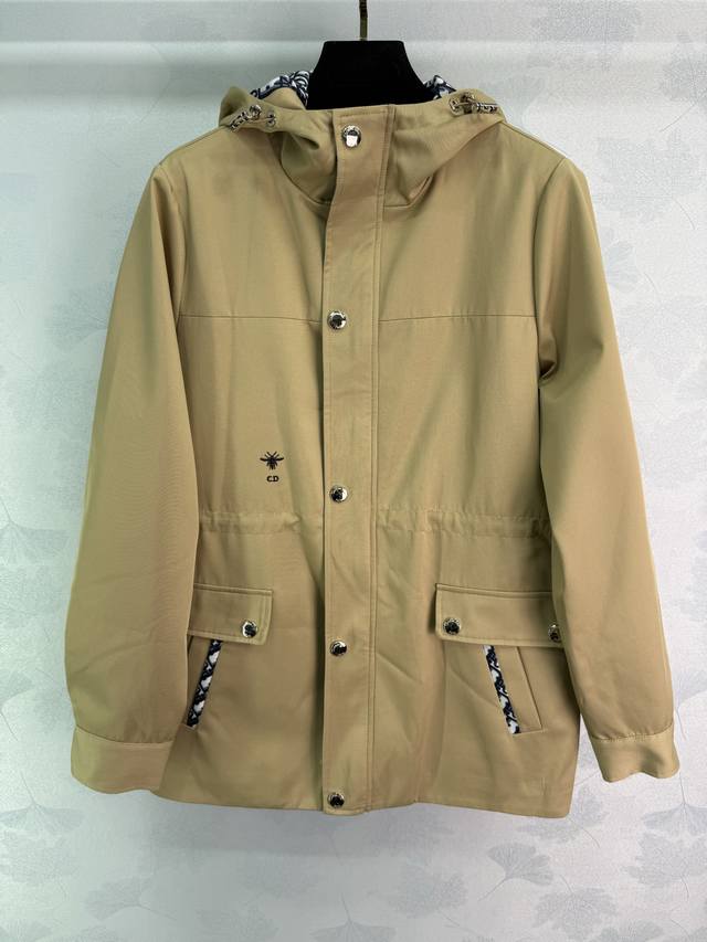 Dio*25 New Hooded Drawstring Waist Trench Coat, Custom Yb Imported Material, Sturdy and Stylish, Adorned with Zipper and Snap Button Adjustment for Easy On and Off, Hooded Design Adds Style and Layers, Adjustable Cuffs, Small Bee Embroidery on the Body Showcases Brand Style, Developed Fabrics and Accessories, Hooded Cut, Youthful and Stylish, All-over D Letter Jacquard Lining, Understated Luxury, Autumn/Winter Fashionable Outfit First Choice, Showcasing British Elegance, 2 Colors, 3 Sizes, S, M, L, T, 2, 6, B. DDD