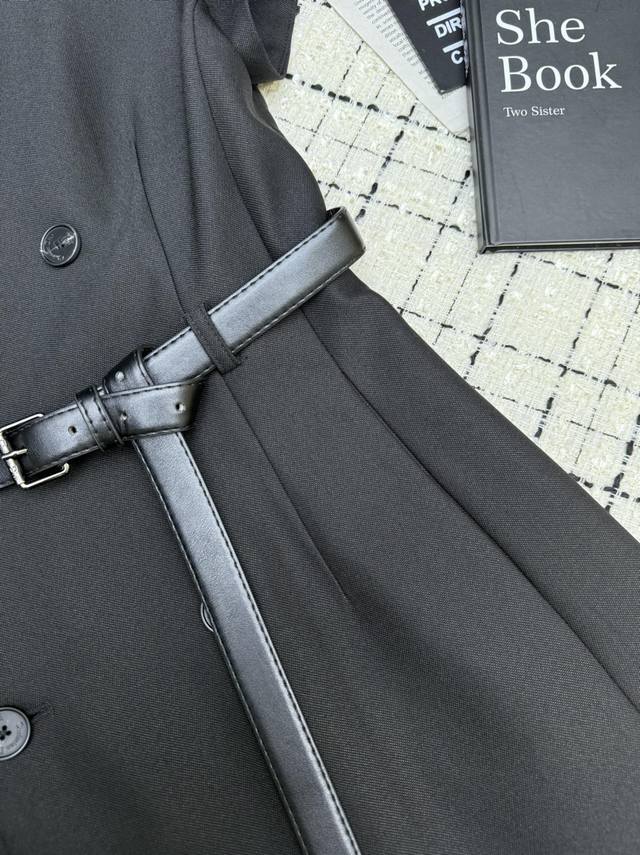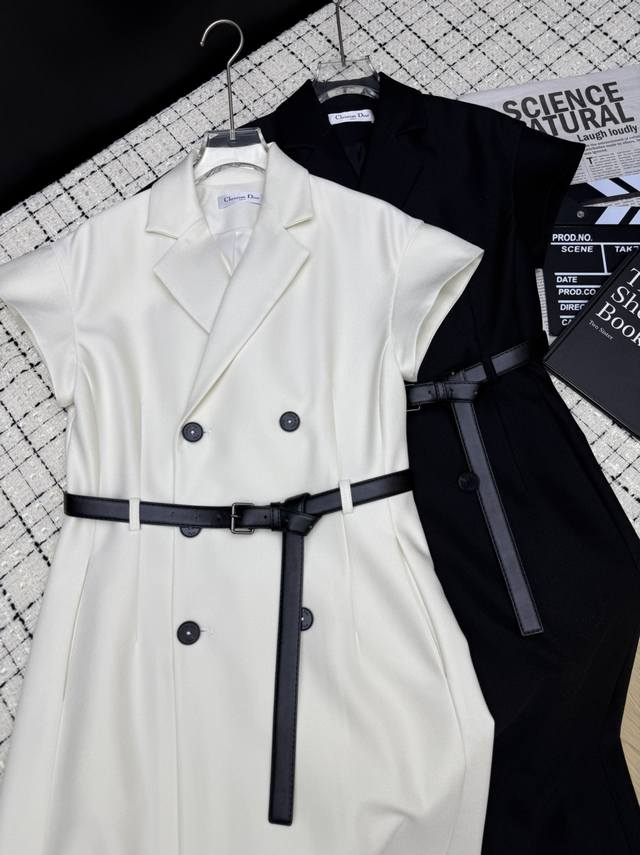 Dio*25 New original mold custom fabric lapel double-breasted long dress treasure suit skirt full of temperament version of three-dimensional shape slim fit more everyday casual feel can be worn in various occasions neat atmosphere classic double-breasted with CD belt waist easily wear a good figure two colors Sml