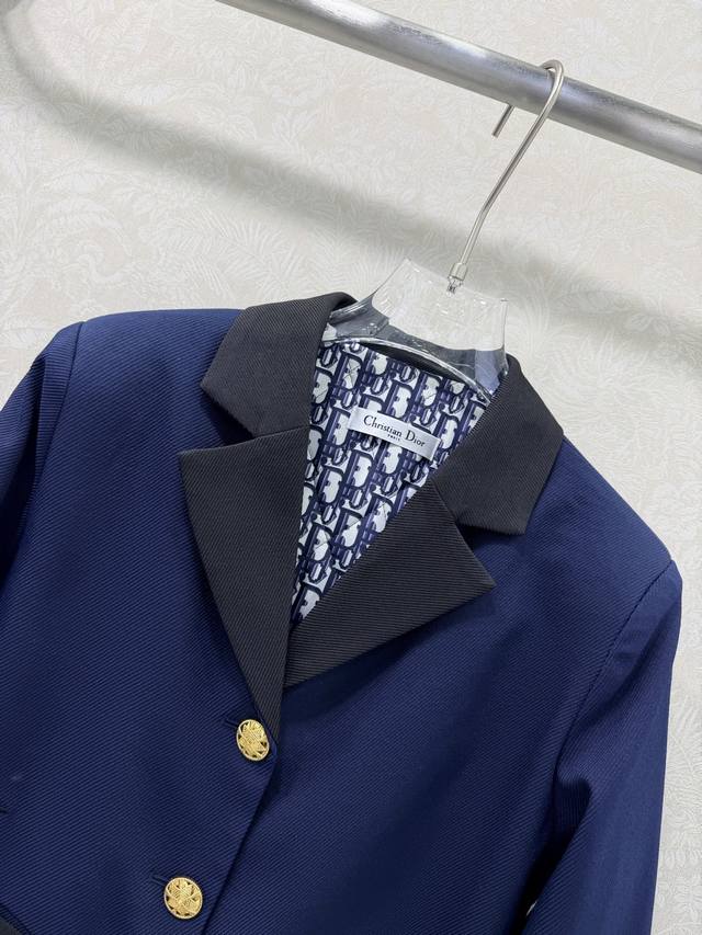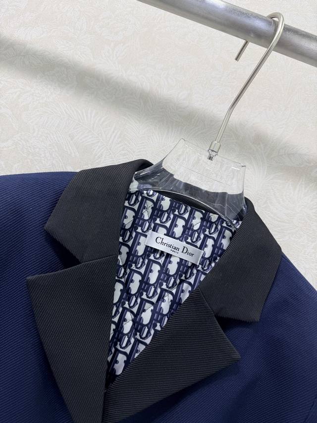 Dio*25 New Padded Suit Jacket with Custom Hardware Lapel, Single-Breasted Design, Navy Blue and Black Contrast, Monogram Padded Lining. Maximum Warmth. Effortless Sophistication, No Need for Styling, Every Detail Exudes "High-End"! A Color Scheme from a Top Luxury Brand, High-End and Timeless! A Must-Have for Fashionistas. Single Color, Sizes S, M, L, DDD