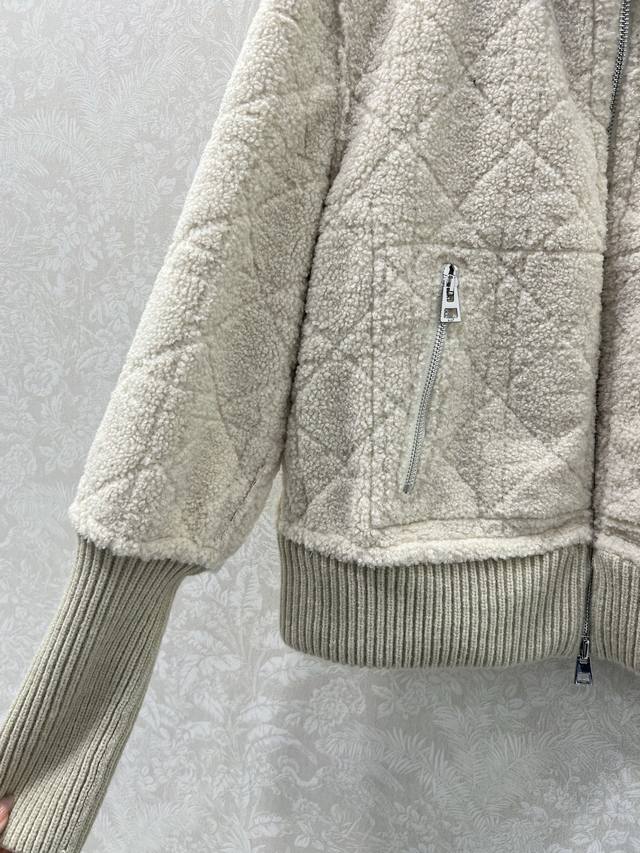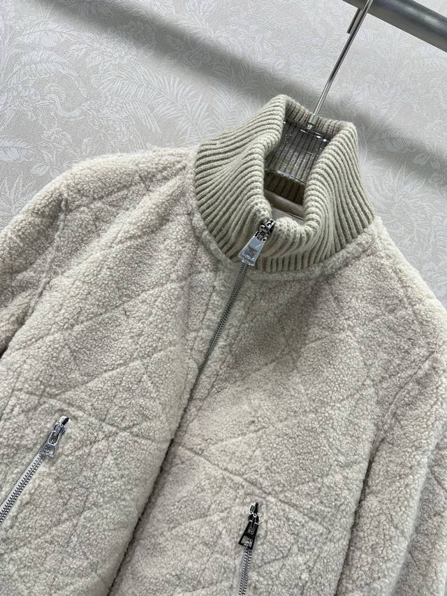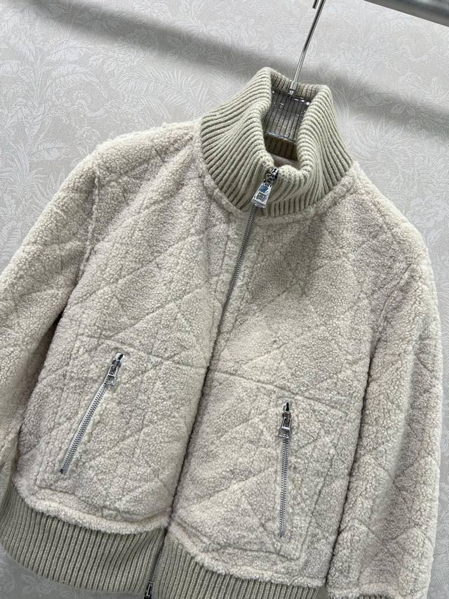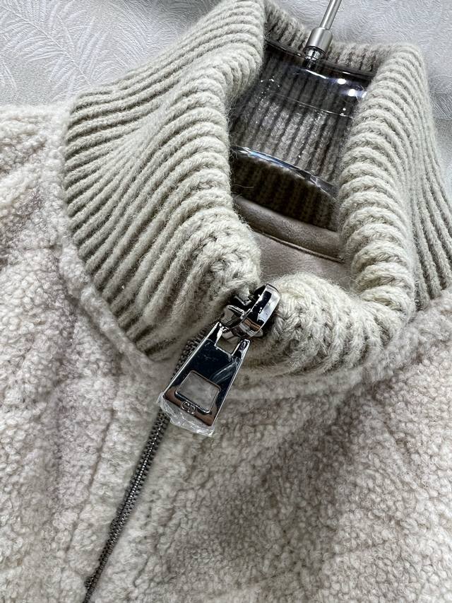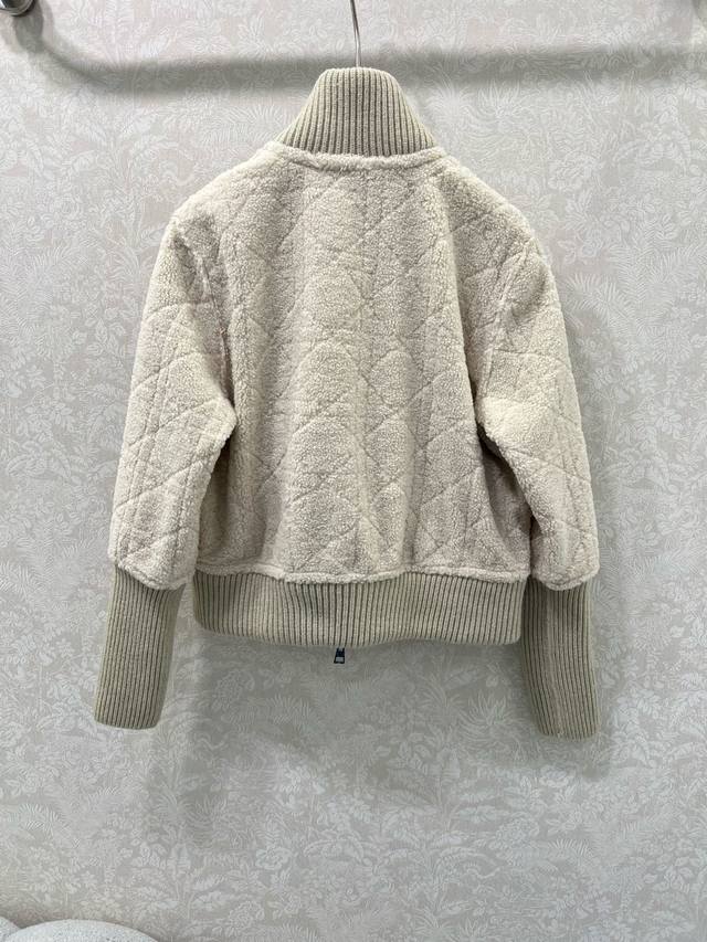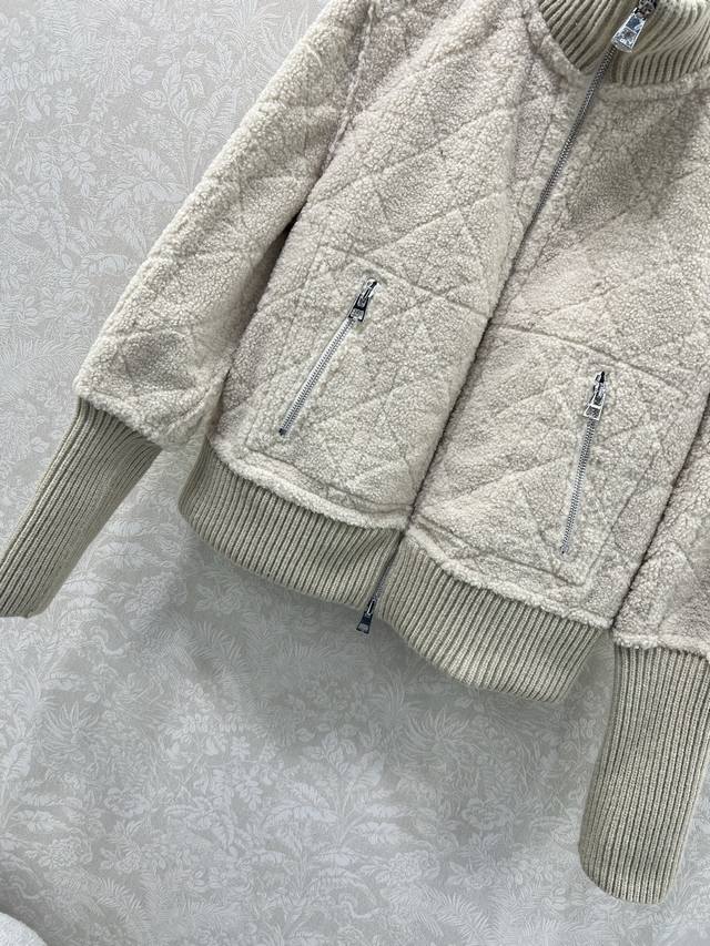 Dio*25 New Reversible Eco-Friendly Recycled Wool Jacket DDD Custom Yb Imported Material, Delicate Texture, Comfortable to Wear, Stand Collar Zipper Jacket, Reversible Design Concept: One side is cannage-patterned lamb wool with clearly visible plush for warmth, the other side is solid suede, offering more styling options. Knitted ribbed trim on the collar, cuffs, and hem provides a close fit and extra warmth. Simple yet sophisticated, stylish and chic for everyday wear. Solid color, size 3 Smlb. DDD