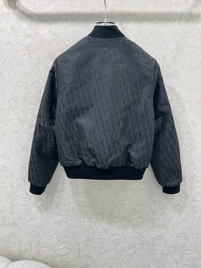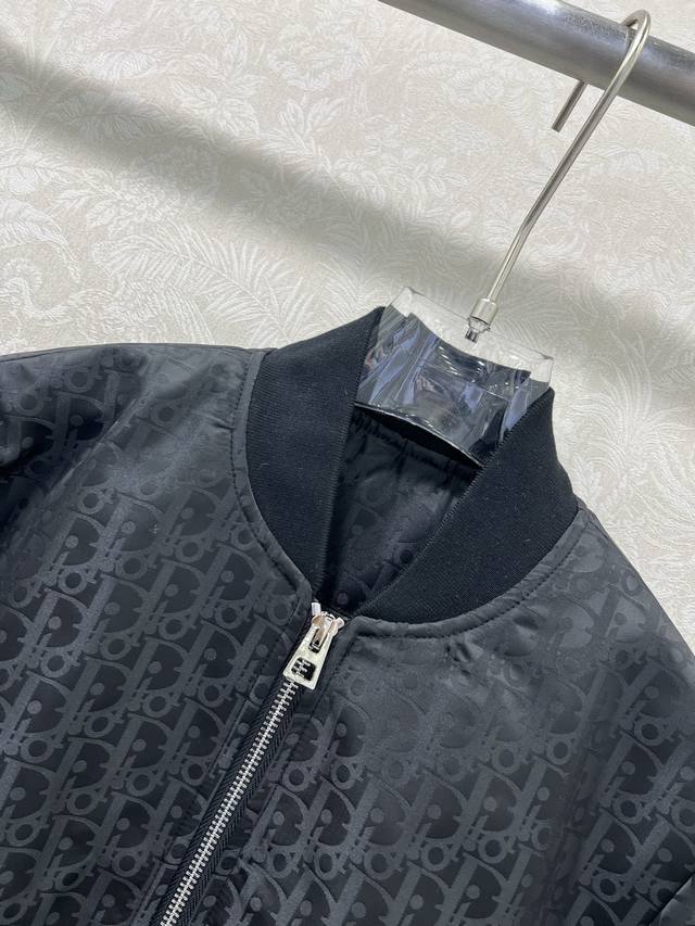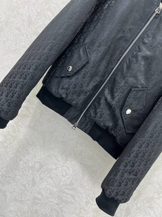 Dio*25 New Ribbed Collar Monogram D Letter Subtle Print Quilted Jacket. The entire body is covered in print as a highlight. The letter logo and custom hardware complement each other. The elastic cuffs fit the body well for a lighter and more flexible feel. The cinched hem easily accentuates the waist and avoids bulkiness. It provides excellent windproof and cold protection, enhancing the style of outdoor activities. It can be easily layered and looks great. Custom-made fabrics and accessories. Look for the high-quality version. Single color. Sizes 3 (S, M, L, D)
