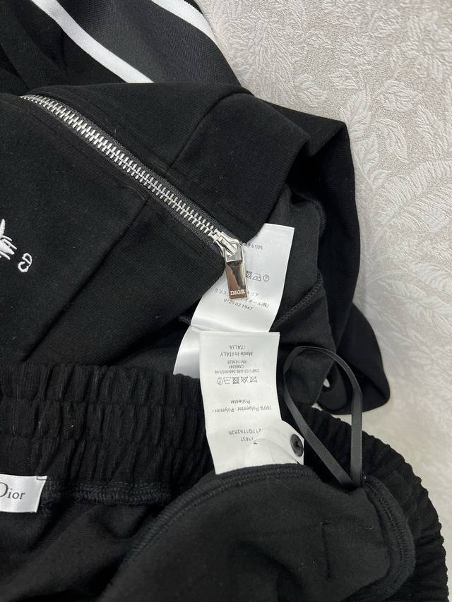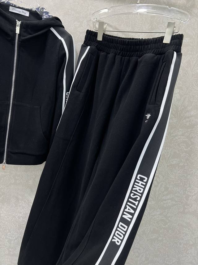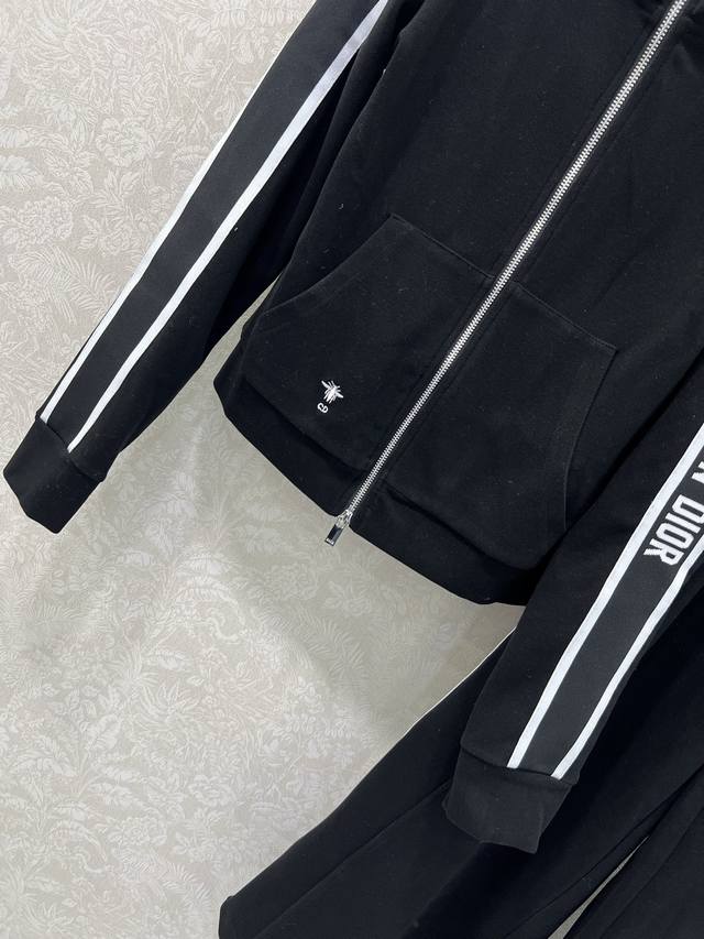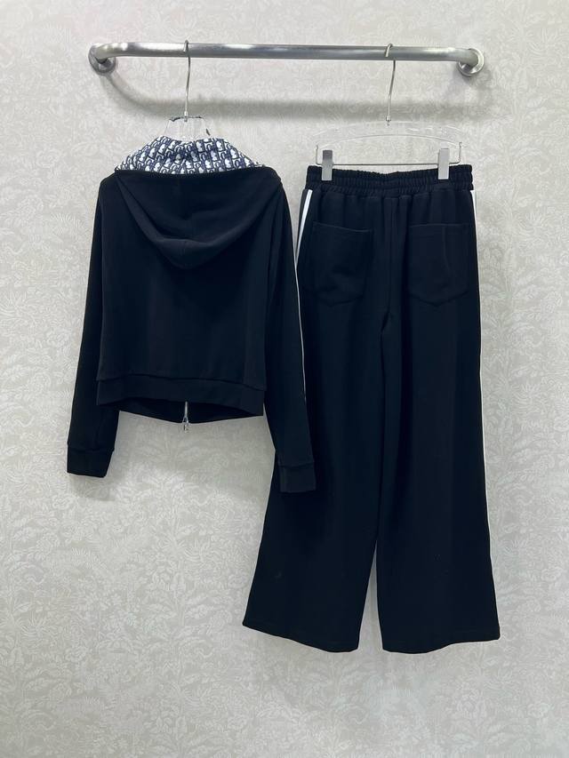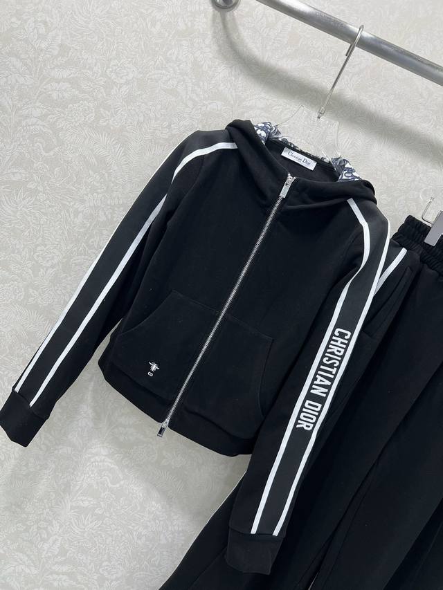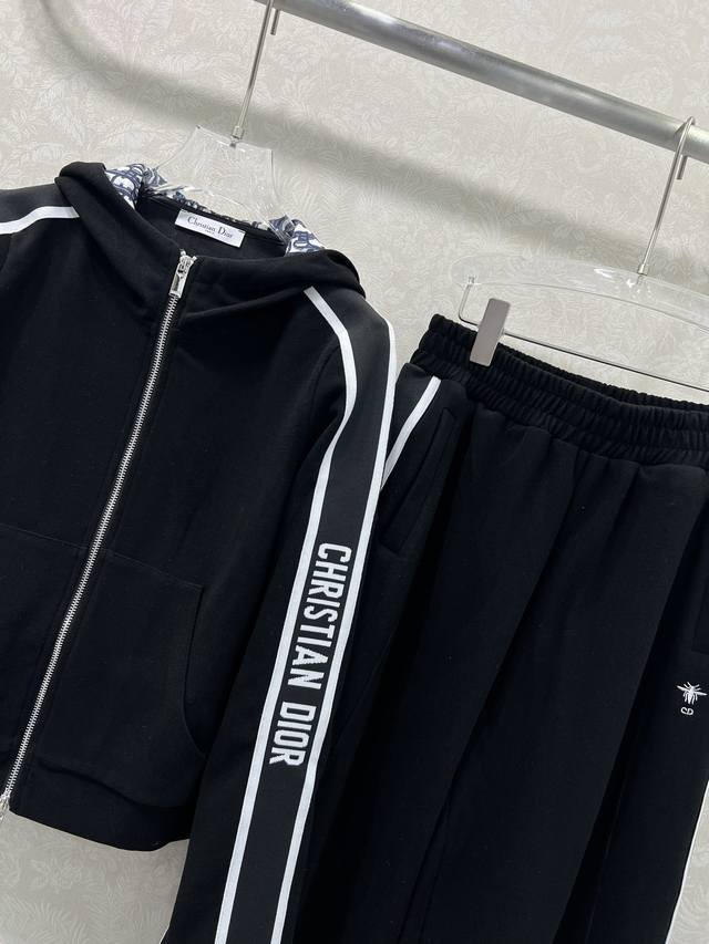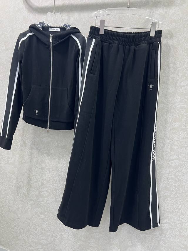 Dio*25 New Set: Hooded Jacket and Wide-Leg Pants Combination Custom Yb Imported Twill Cotton Material, Lustrous, Comfortable, and Smooth Draping. The signature letter webbing design on the outer side of the legs highlights the brand's style. The bee Cd embroidered logo at the waist adds a sense of layering to the overall look. The hooded zip-up front and matching straight-leg pants from the same series enhance individuality. A casual and sophisticated set for everyday wear, relaxed and stylish. Available in single color. Sizes 3: Smlb DDD