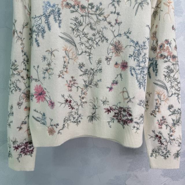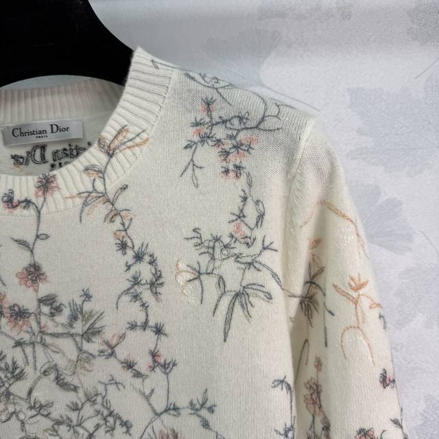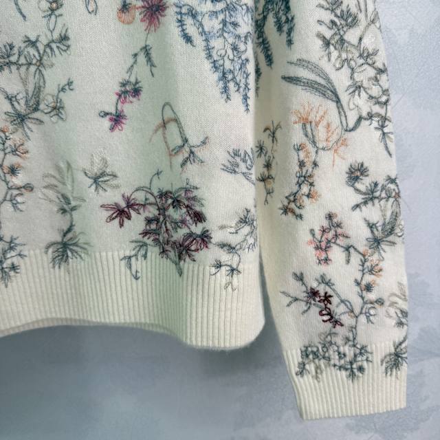 Dio*25S Early Autumn New Arrival! Cashmere sweater with floral embroidery! The full-length heavy-duty embroidery is super beautiful. A must-have for the fair-skinned, rich, and beautiful! Luxurious and high-end item, classic straight-tube versatile style, elegant and youthful girlish style. Looks great with a gauze skirt or jeans! 1 color, 3 sizes Sml