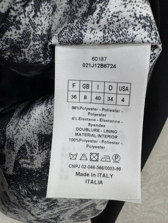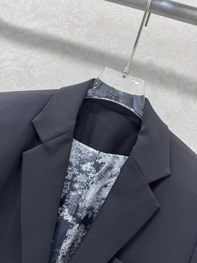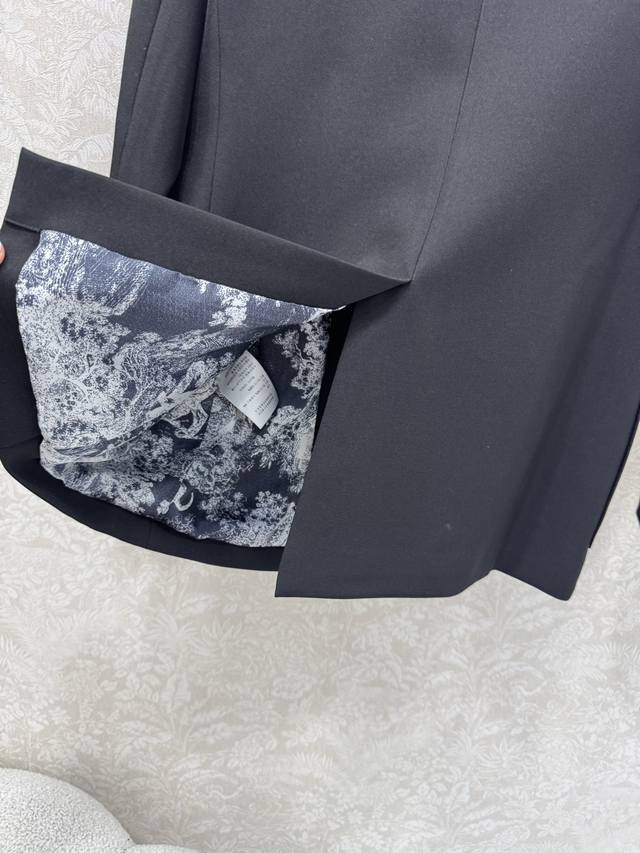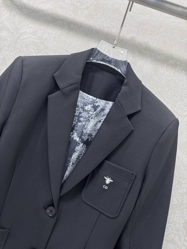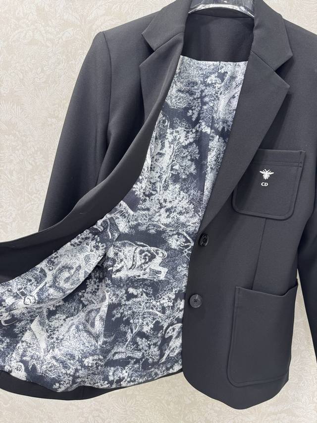 Dio*25's new blazer boasts excellent fabric stiffness and texture. Embroidered with a small bee logo on the chest, the lining features a classic tiger print, and custom hardware details. The consistent Yb silhouette and cut create a slimming, high- end look. A sophisticated, age-reducing look, perfect for any outfit, showcasing elegance and grace. This slimming blazer is perfect for everyone. Highly recommended in solid colors, sizes Sml B