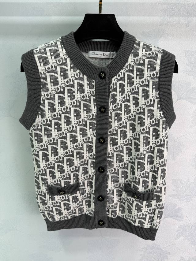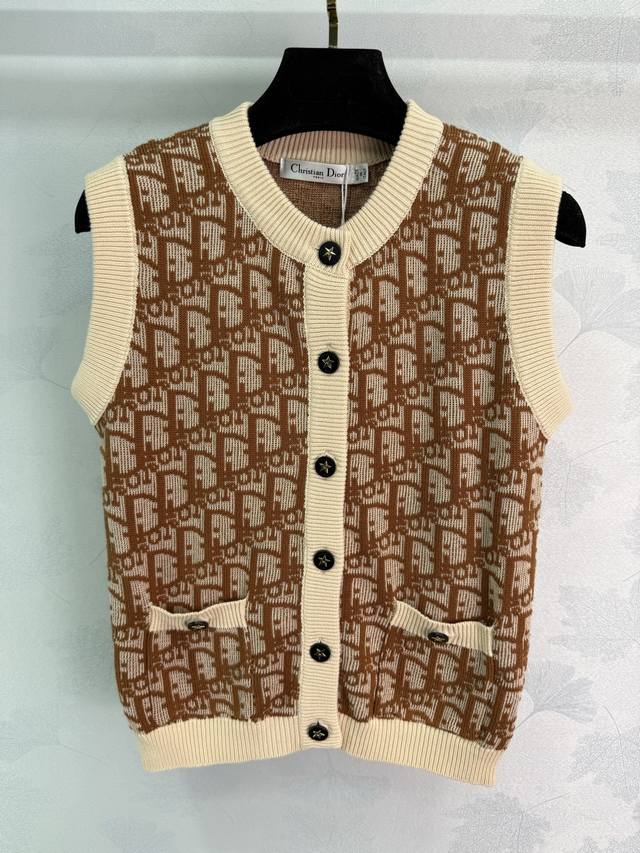 Dio*25's new monogram logo knitted vest. Custom-made imported knit material, comfortable, soft, and stretchy. Threaded hems at the neckline and cuffs add a layered look. All-over monogram logo jacquard embellishment. Cute and playful color scheme. Regular fit. Versatile and versatile! Available in 3 colors and 3 sizes. Sml T226B