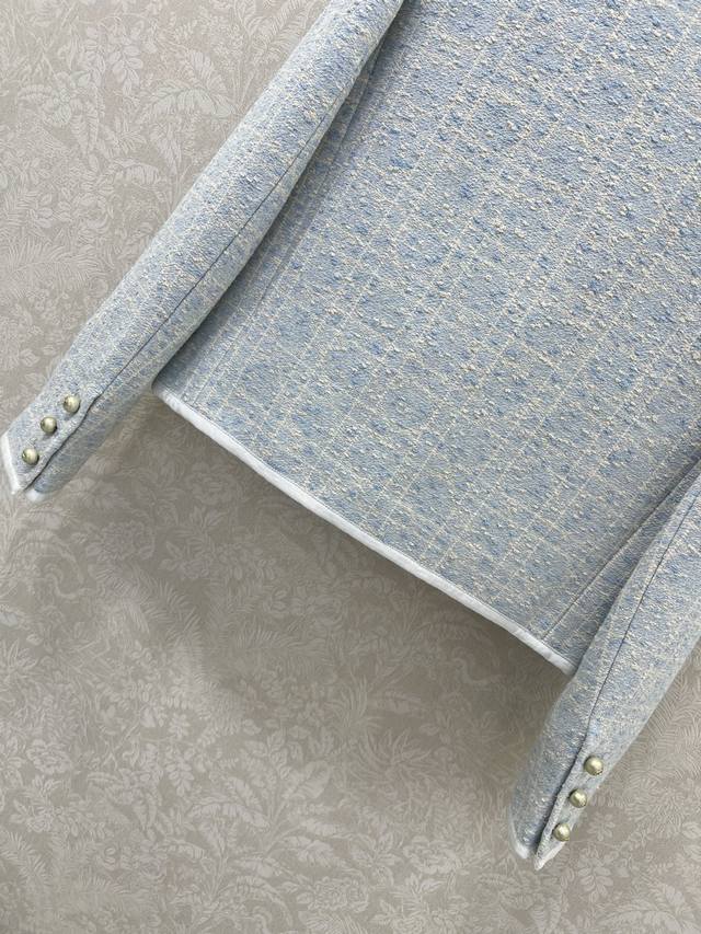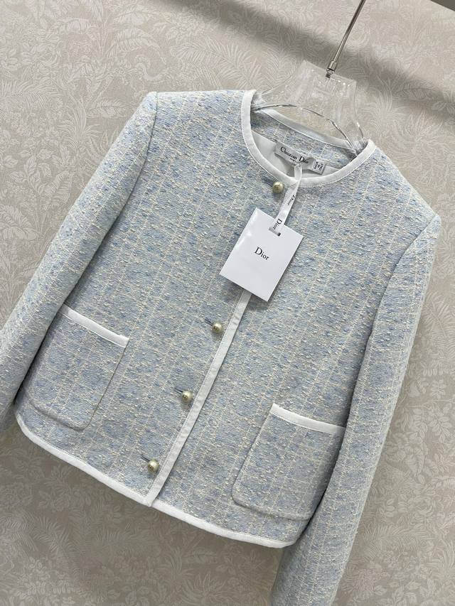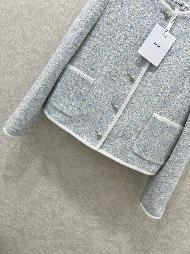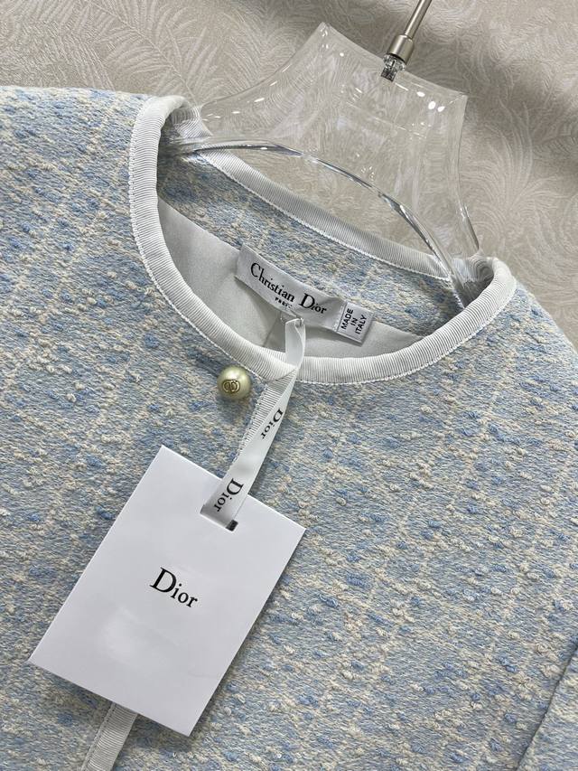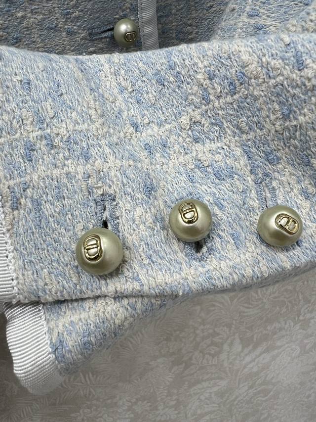 Dio*25's new rattan check round-neck dress in a macaron colorway is now shipping! Made of stunning lotus pink and light blue, this custom-made YB imported woolen material is high-quality and in padded shoulder design. The front collar is detailed with white binding for a layered look. The single-row Cd pearl buttons offer an intellectual and gentle adjustment. The rattan check pattern, weaved using yarn patterns, highlights the brand's signature style and enhances the brand's sophisticated aesthetic. The round-neck dress is designed to be paired with a selection of straight skirts, creating a perfect look. The macaron colorway is a perfect match for formal occasions, showcasing a refined and refined look. Available in 2 colors and 3 sizes (Sml