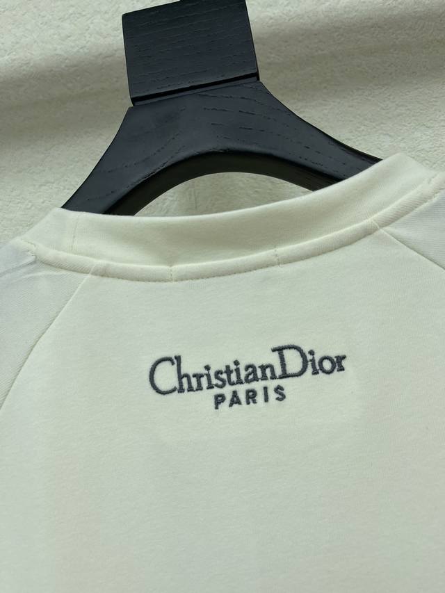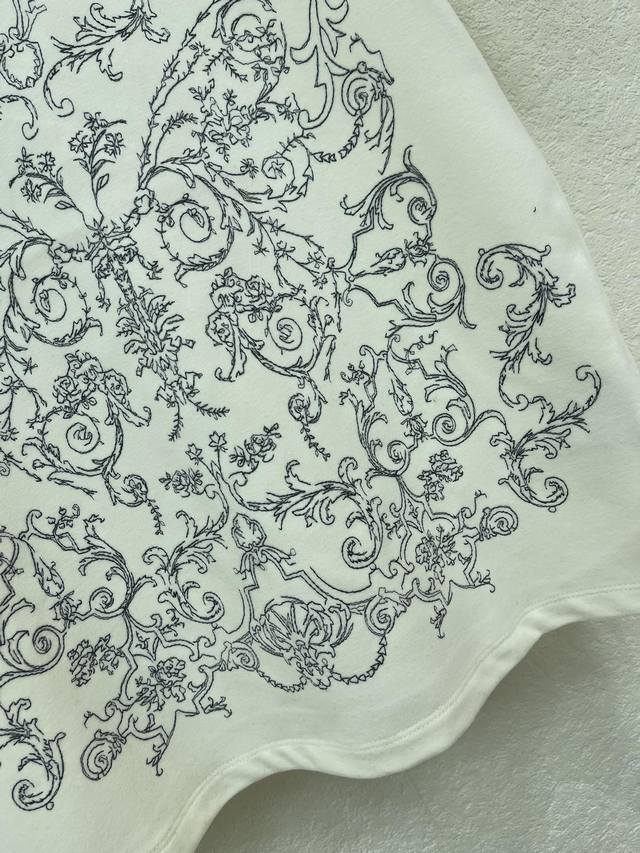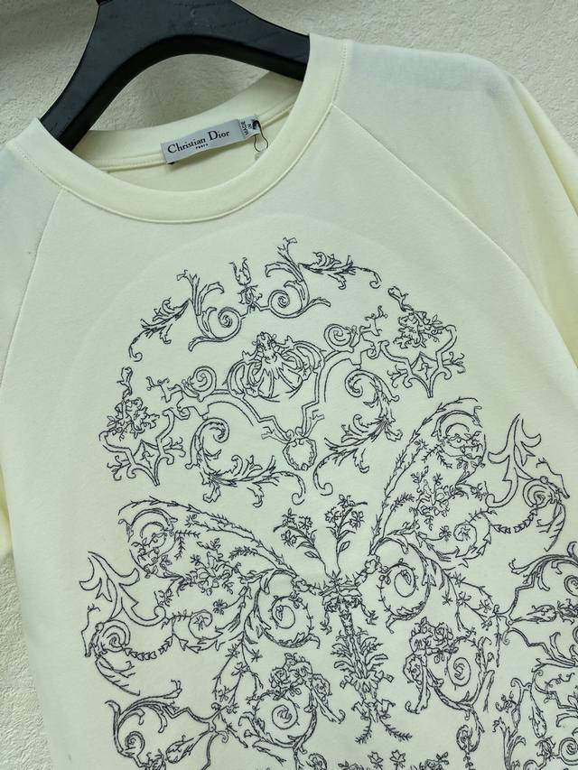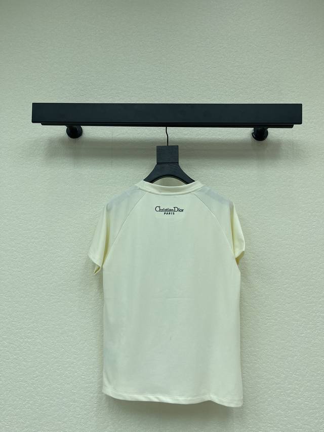 Dio*26 Early Spring New Round Neck Embroidered Short-Sleeve T-Shirt. Made of custom Yb twill cotton, it boasts a high-quality feel, is soft and comfortable, and features a regular short-sleeve cut. The fabric, made from high-weight cotton, has a slight stretch for a slimming effect. The body is decorated with natural elements such as flowers and vines, combined to form a butterfly pattern, echoing the logo on the back neckline. This aligns with the brand's style and exudes a strong sense of design. It looks great worn alone or layered. Sml Aa. DDD