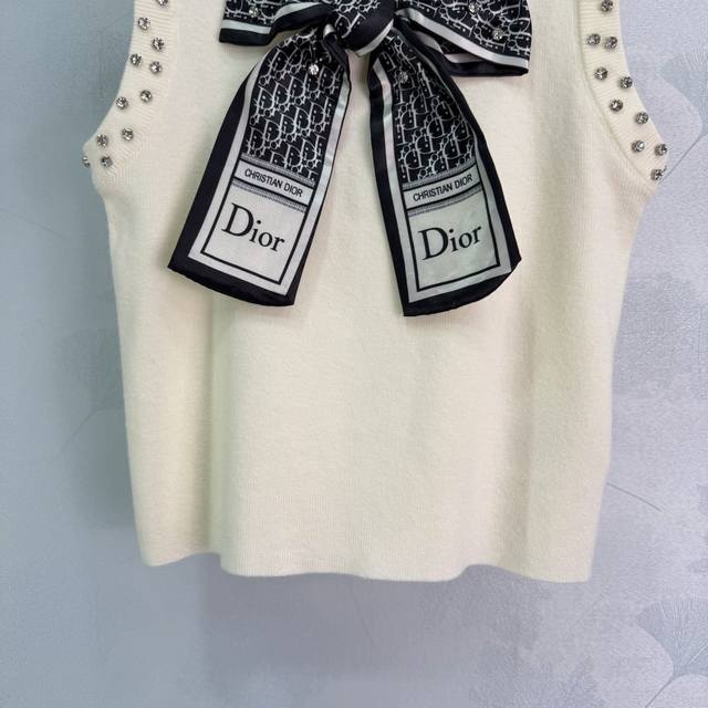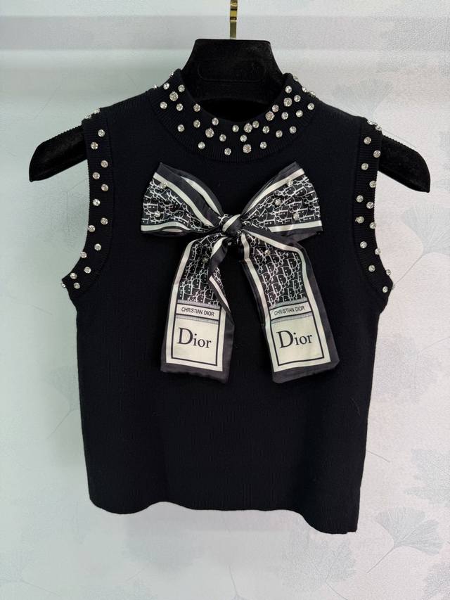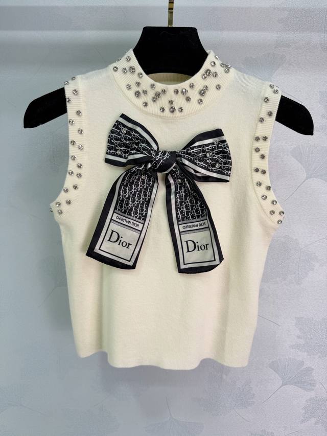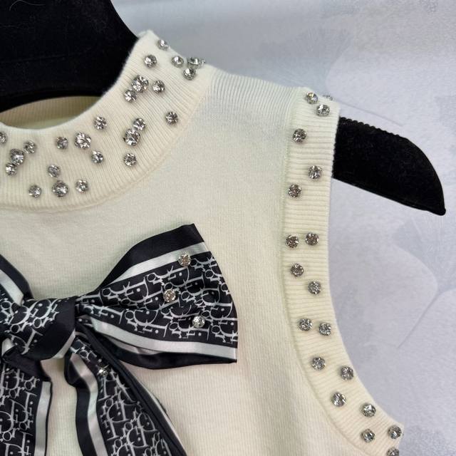 Dio*26 Early Spring New Silk Scarf Bow Vest The large bow on the chest is super eye-catching, with silk scarf print and logo, making it highly recognizable. Crystal studs adorn the neckline and shoulders, adding a touch of sophistication and sparkle. The sleeveless design is clean and crisp, and it looks stylish paired with jeans or a skirt, easily creating a sophisticated everyday look! 2 colors, 3 sizes: S, M, L, T226B, DDD