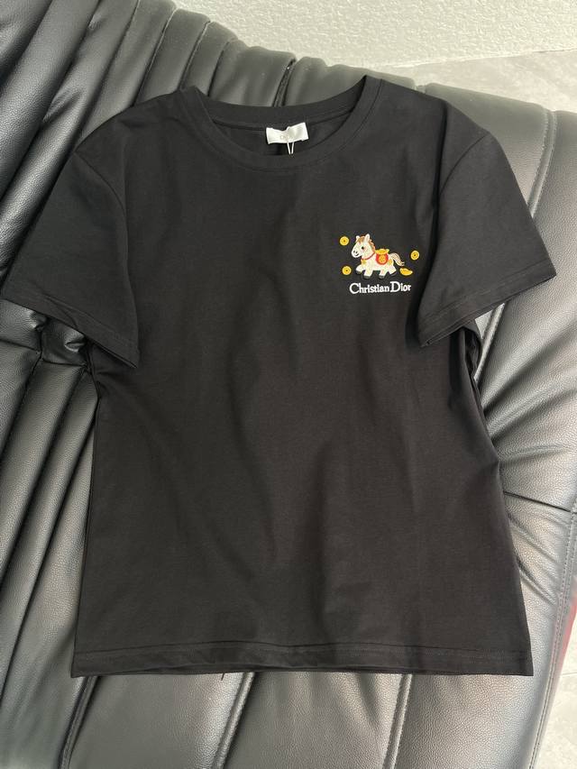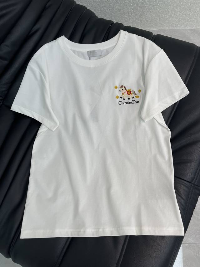 Dio*26 Spring/Summer New Embroidered Pony Short-Sleeve T-Shirt DDD Limited Edition for the Year of the Horse DDD Auspicious Meaning DDD May Wealth Come Immediately DDD Super High-Quality Embroidery Craftsmanship DDD You Can Feel the Quality Just by Touching It DDD Excellent Details DDD Straight Cut DDD Suitable for All Body Types DDD All Colors Are Easy to Match DDD Sizes: Sml Aa. DDD