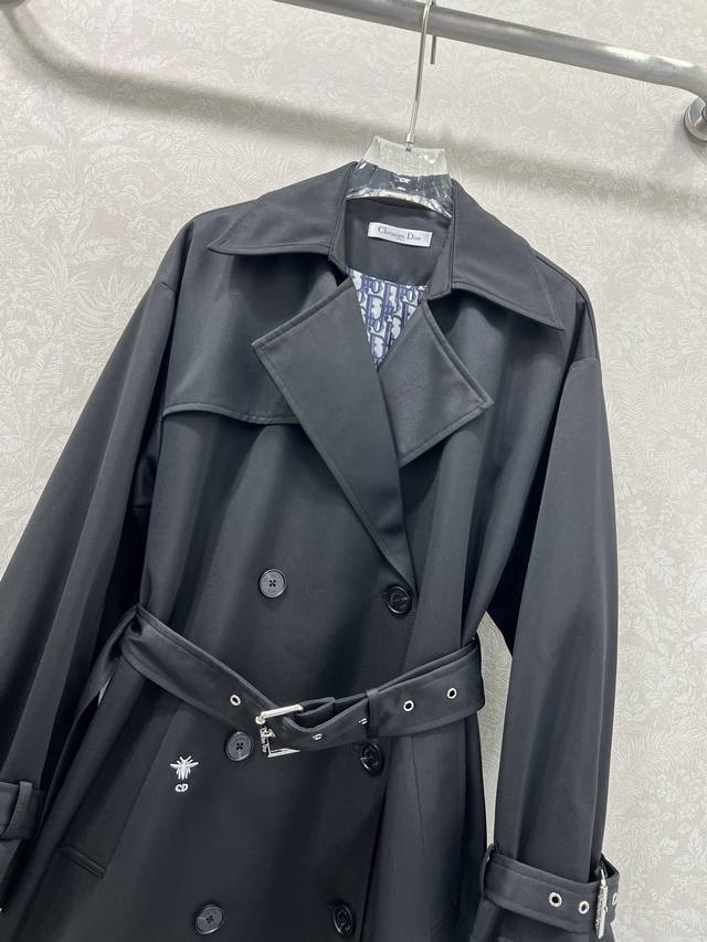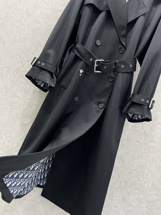 Dio*New 2025 Long Trench Coat - Chic and Blogger-Style! A must-have for creating a flattering silhouette. Features a double-breasted lapel, classic bee embroidery logo, and a classic monogram logo lining. Emphasizing detail and understated luxury, it's paired with a custom logo and letter print fabric belt. The overall quality is top-notch, exuding a classic, sophisticated, and high-class aura. Available in 2 colors and 3 sizes. Smlb. DDD