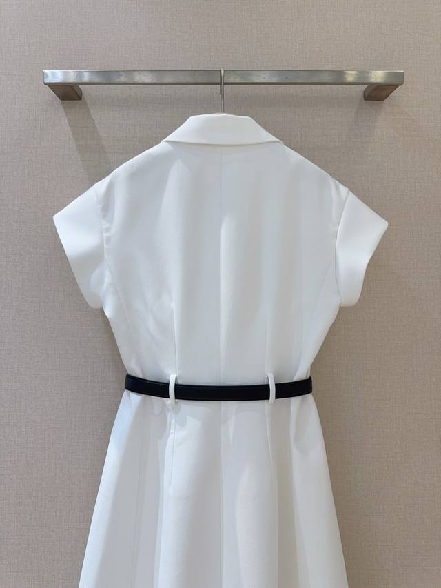 Di*O*R New Arrival Recommendation... DDD A simple white dress meets suit elements, made of 100% polyester. DDD Double-breasted design and neat lapel, capable and stylish. Short sleeves are suitable for spring and summer, black belt cinches the waist to accentuate the figure, and two side pockets combine elegance and presence, easily navigating between the workplace and social occasions. DDD Sizes: Smlxl, K250203, DDD