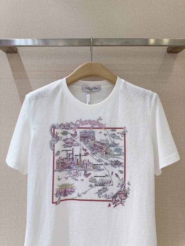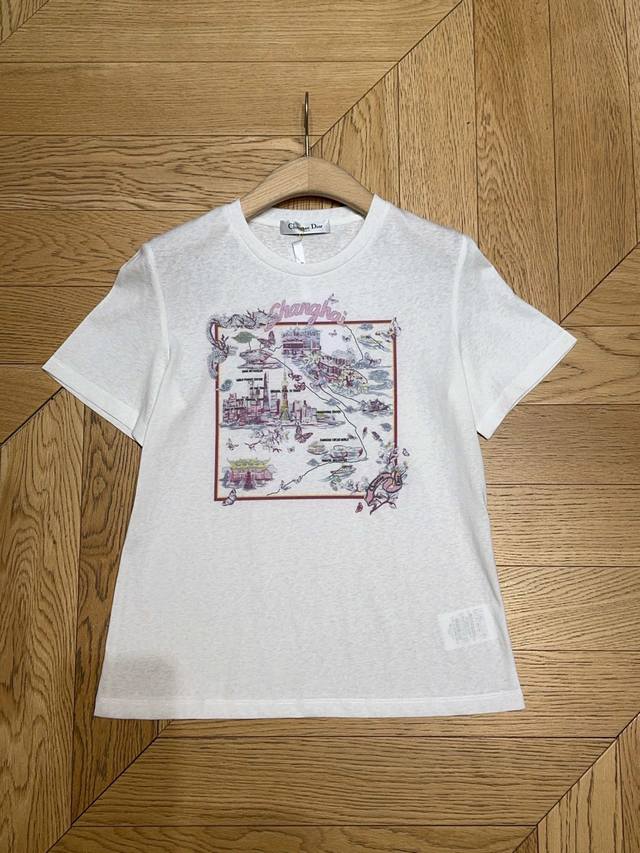 Dio*R Printed Versatile T-Shirt DDD Printed Crew Neck Tee, featuring an urban resort print pattern, presented in a distressed, high-quality cotton-linen material. The signature ribbon letter print on the chest elevates the garment's quality. True to the original's fashionable and casual style, easily paired with any item DDD Sizes: S, M, L, XL DDD K250611 DDD