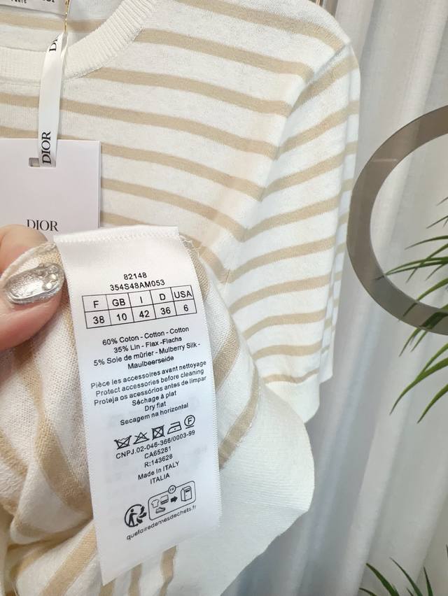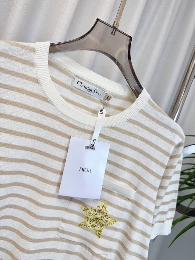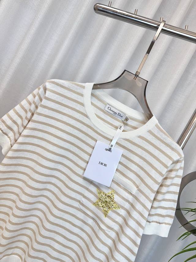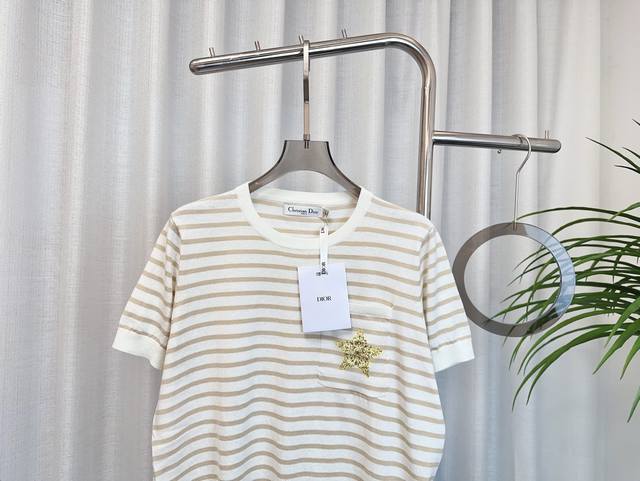 Di*R new printed five-star ribbon cotton and linen striped short-sleeved top. Custom-woven cotton and linen fabric. Breathable and skin-friendly. Made of custom-woven striped fabric. Side pocket design. Refreshing and comfortable. Age-reducing. Versatile style. Highest quality. Welcome to compare. Sml