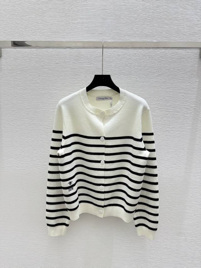 D's early autumn new contrast striped knitted long-sleeved cardigan Color: White