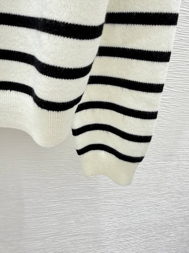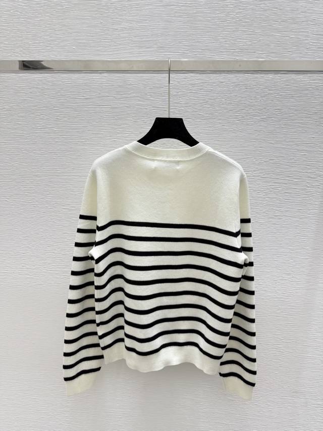/ D's early autumn new contrast striped knitted long-sleeved cardigan Color: White