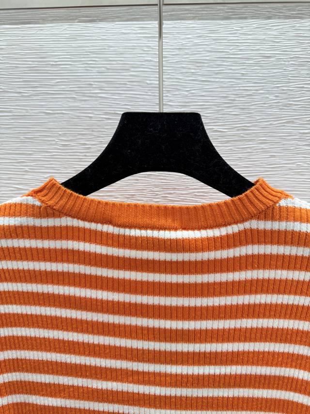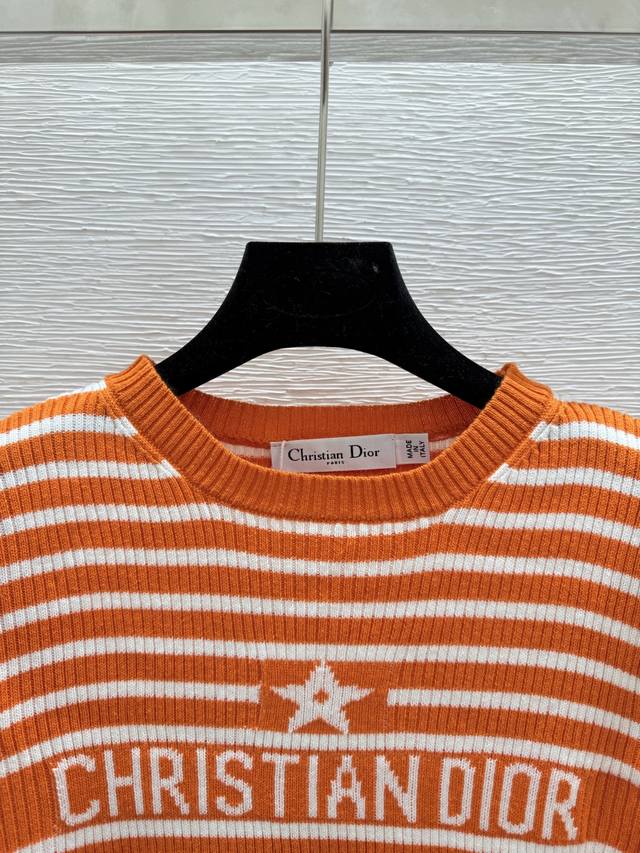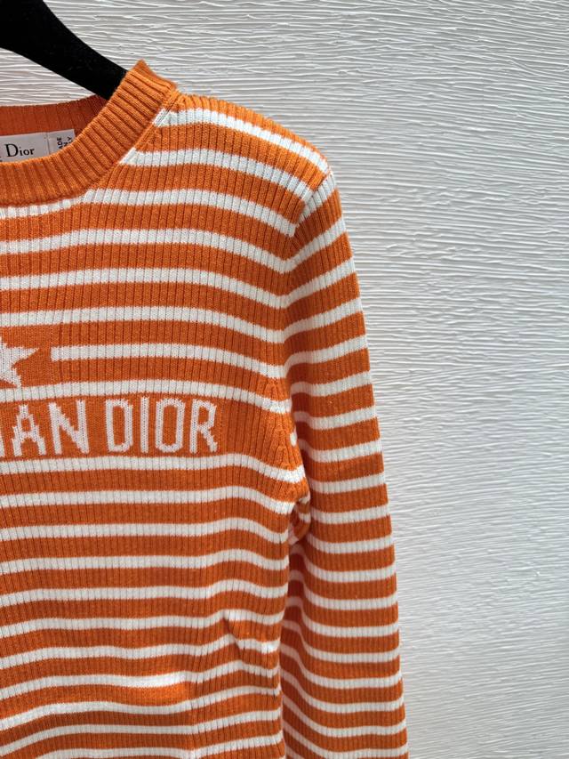 D's early autumn new five-pointed star letter striped round neck knitted long-sl