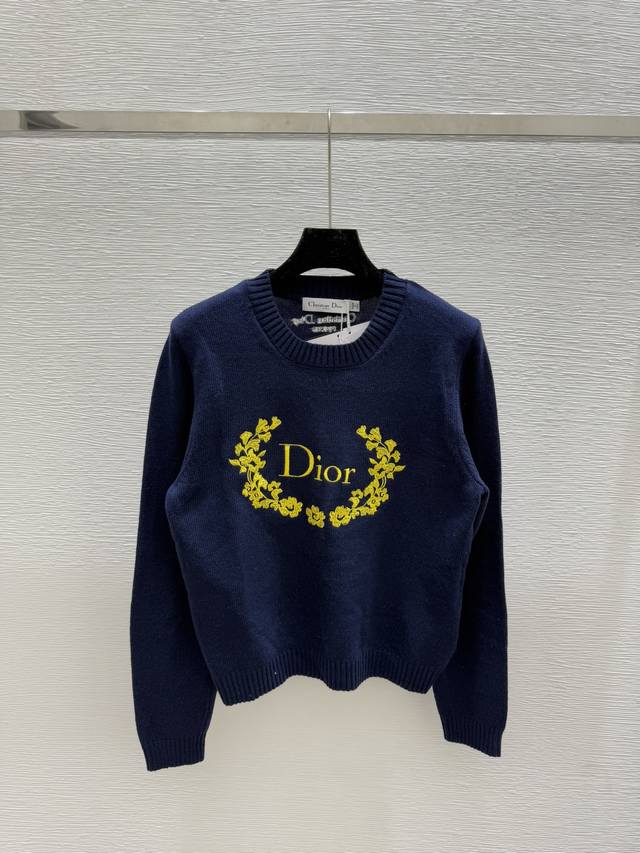 D's early autumn new style letter flower embroidery round neck knitted long sleeve