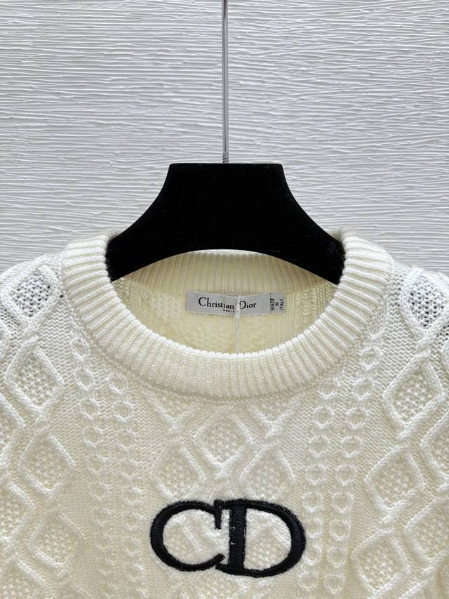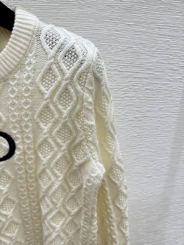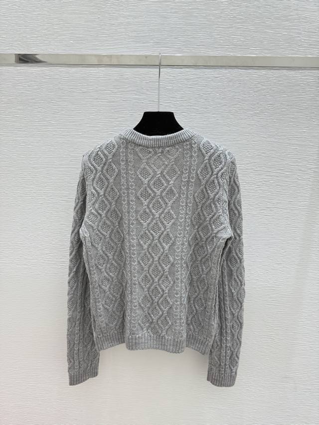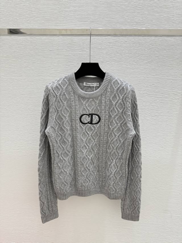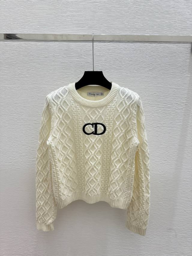 D's early autumn new style solid color three-dimensional pattern round neck knit